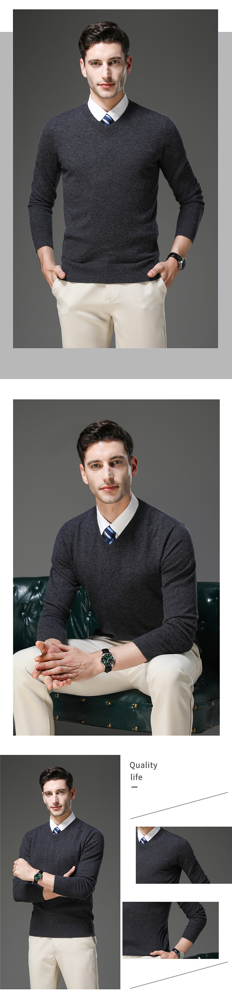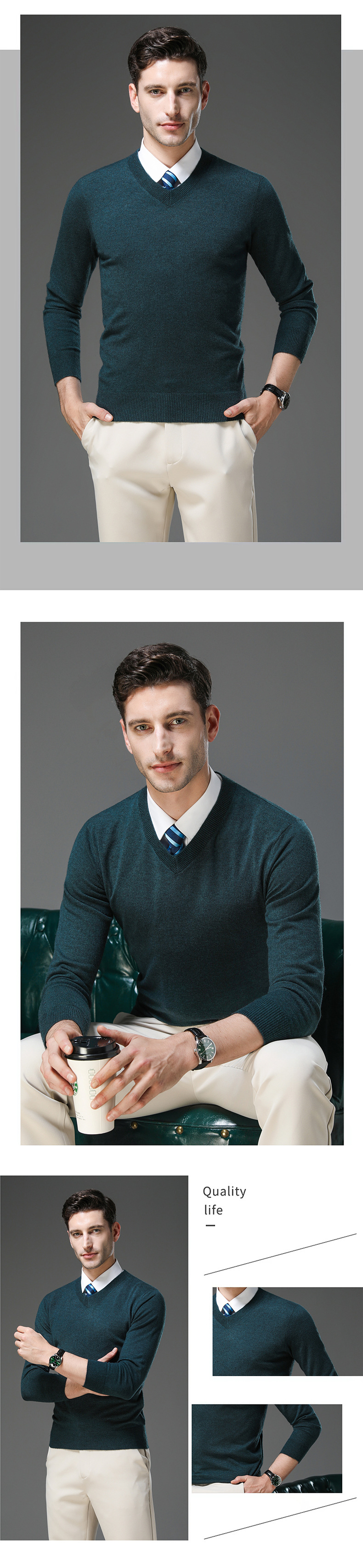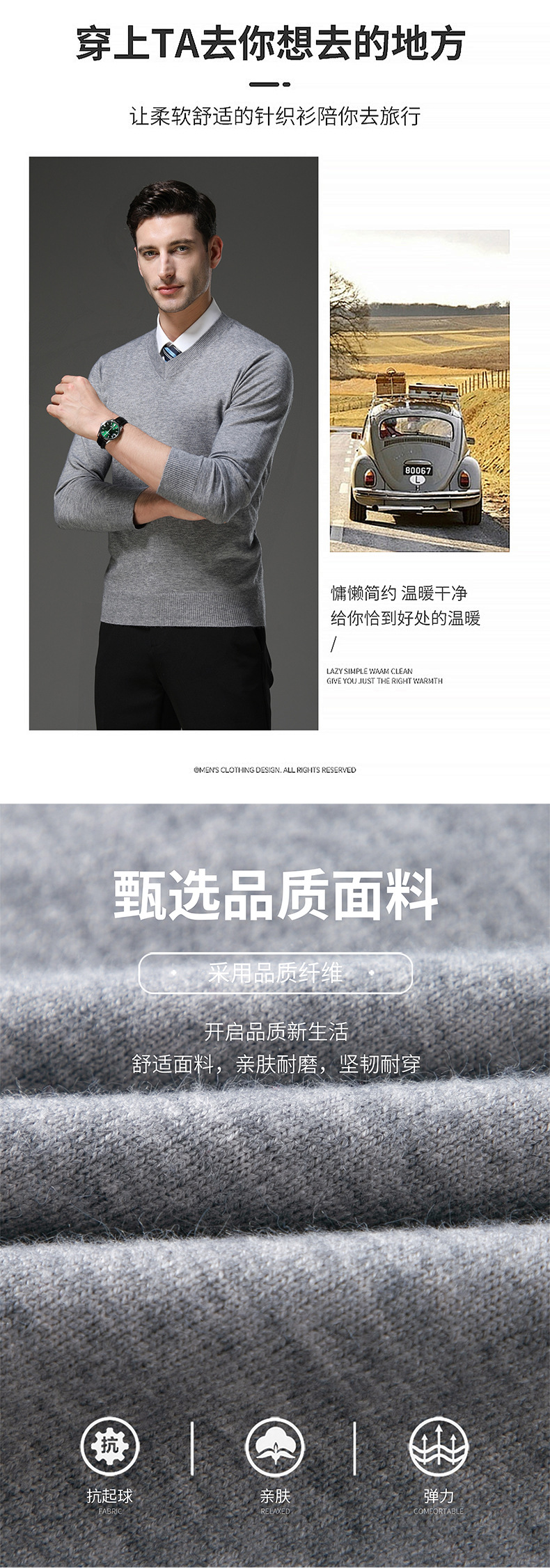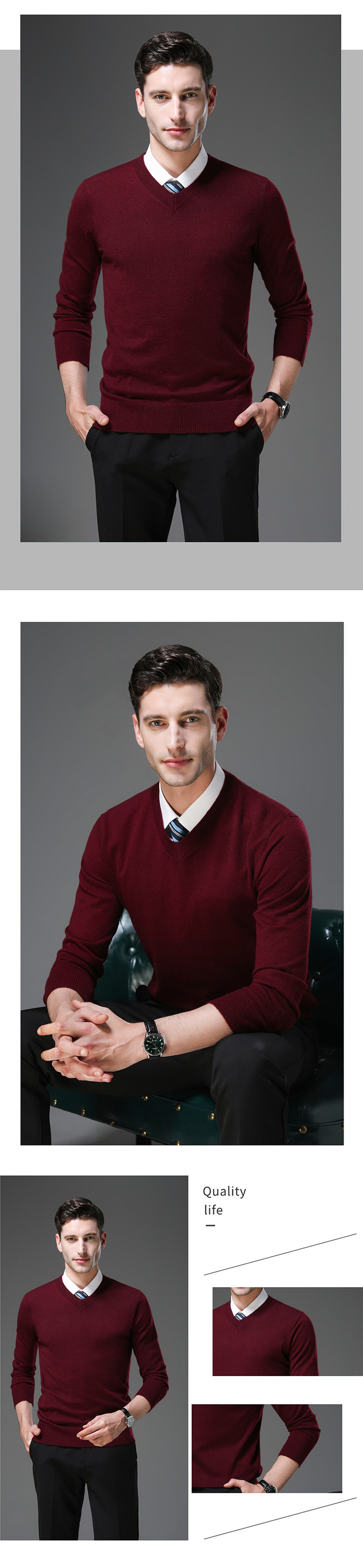 국경 간 남자 가을 및 겨울 새로운 V 넥 니트 스웨터 긴팔 스웨터 중년 및 노인 캐주얼 올 매치 느슨한 얇은 베이스스토어 가기