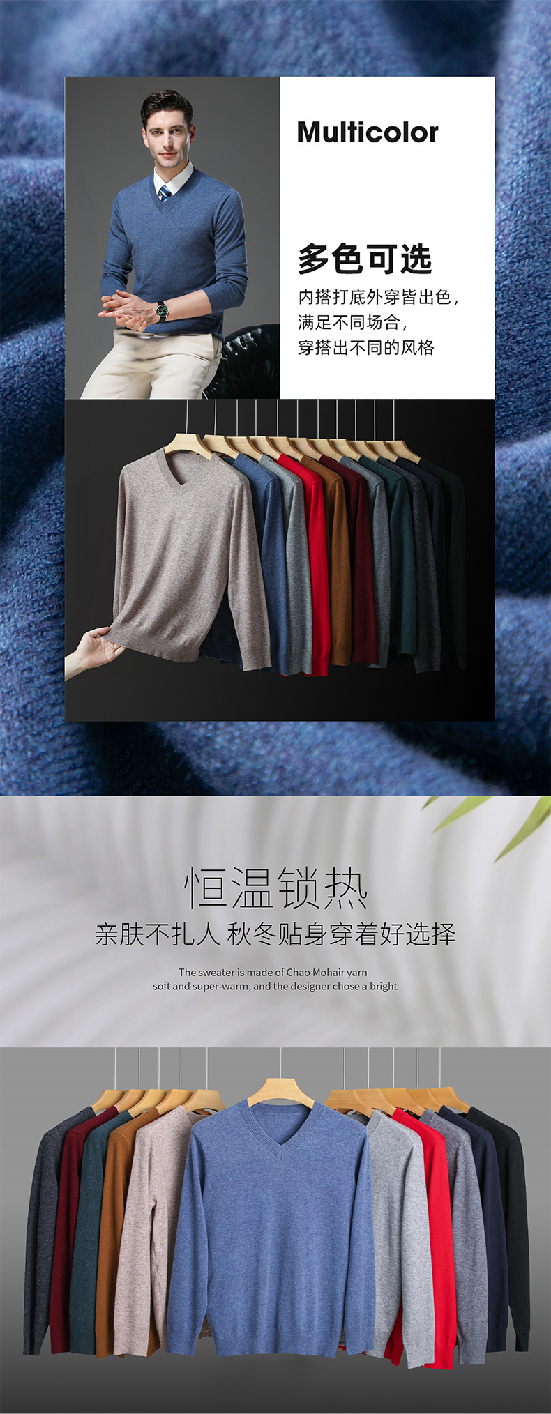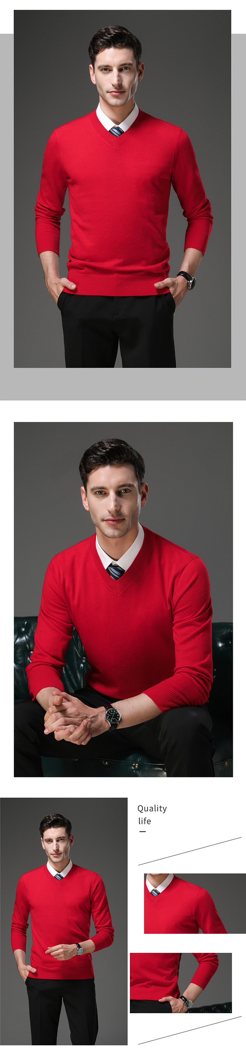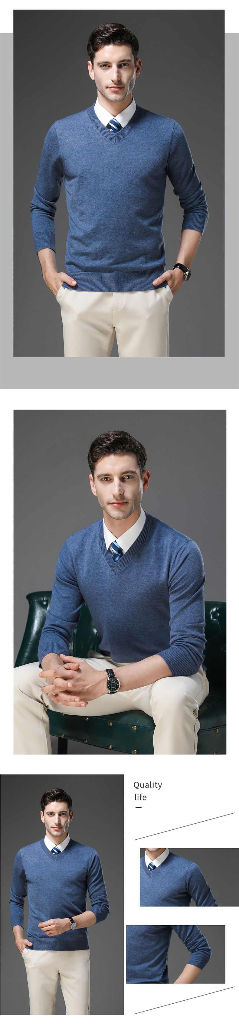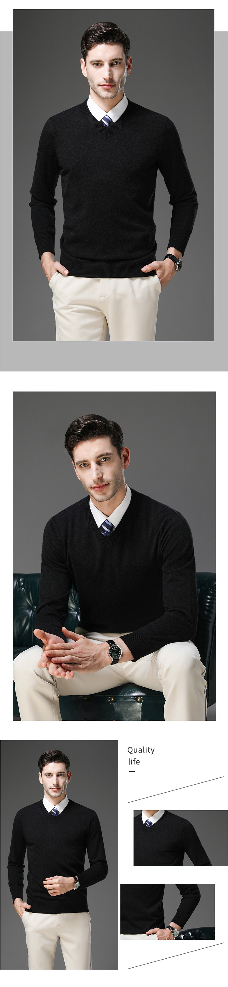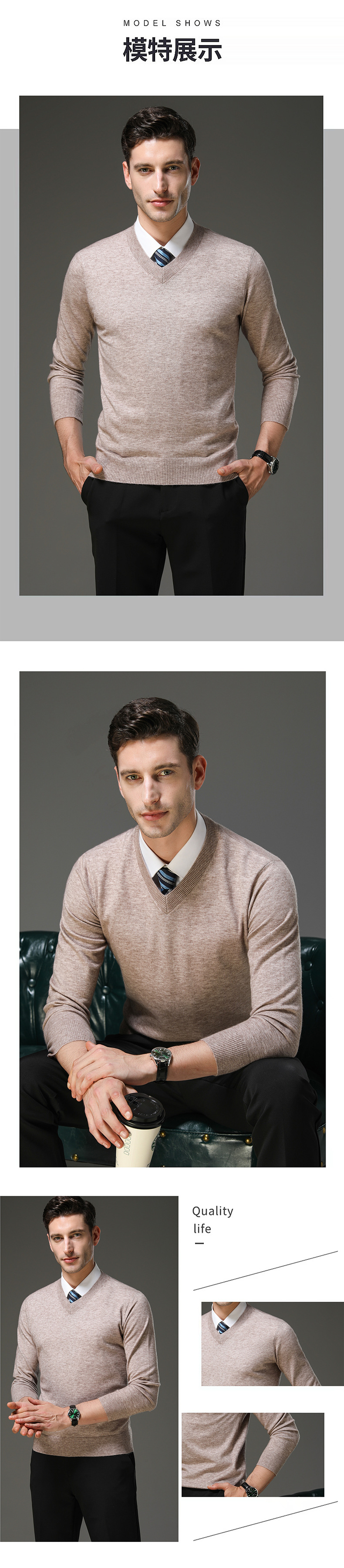 국경 간 남자 가을 및 겨울 새로운 V 넥 니트 스웨터 긴팔 스웨터 중년 및 노인 캐주얼 올 매치 느슨한 얇은 베이스스토어 가기