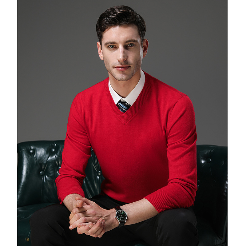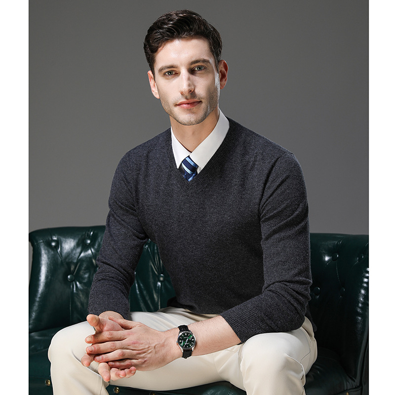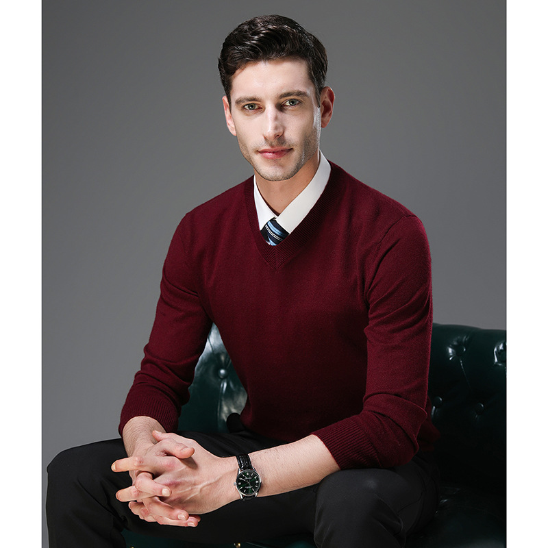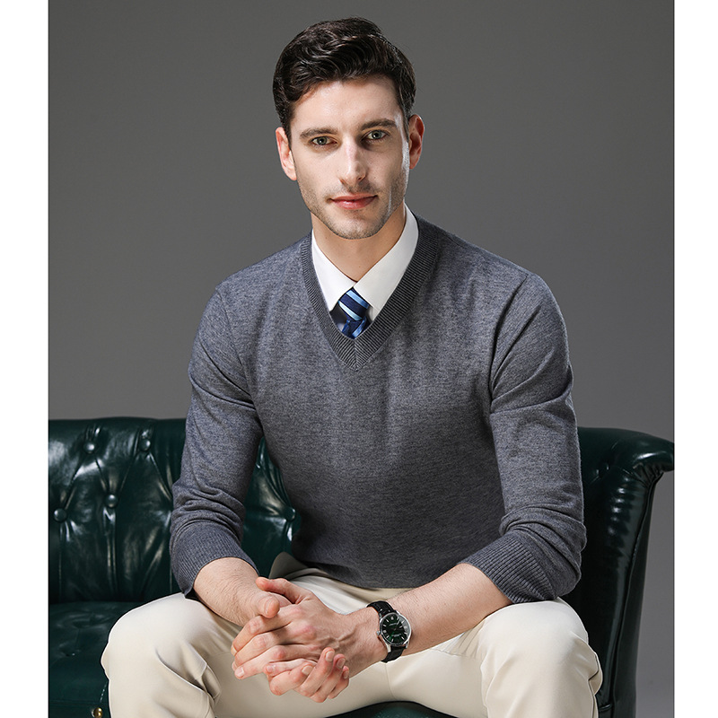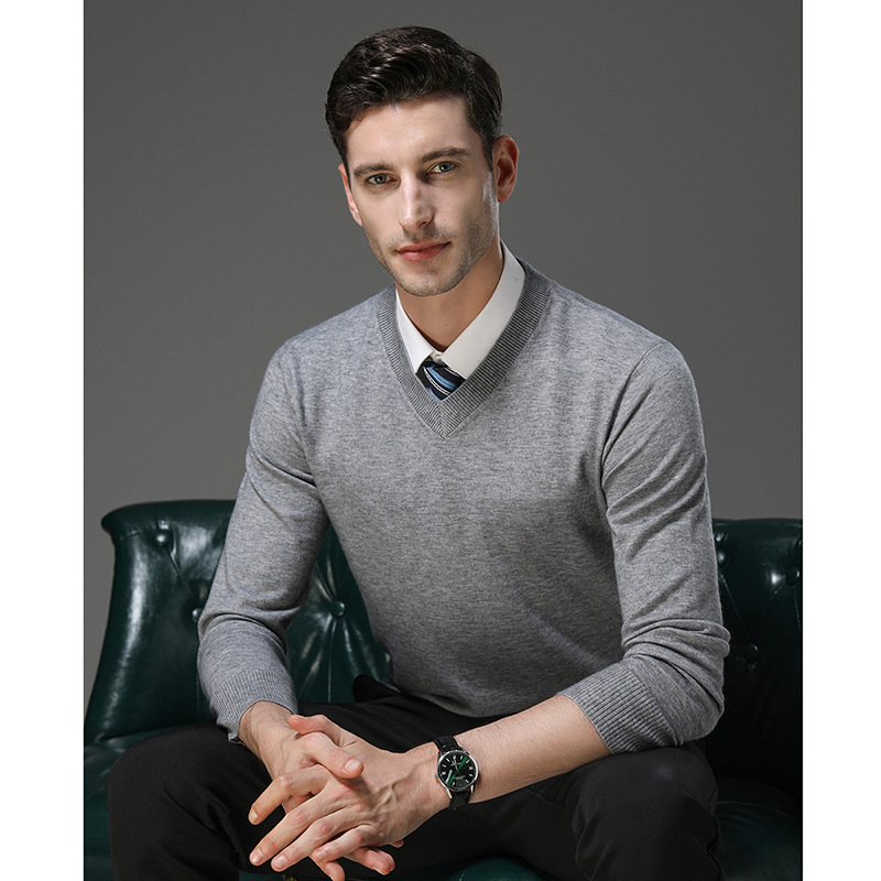 국경 간 남자 가을 및 겨울 새로운 V 넥 니트 스웨터 긴팔 스웨터 중년 및 노인 캐주얼 올 매치 느슨한 얇은 베이스