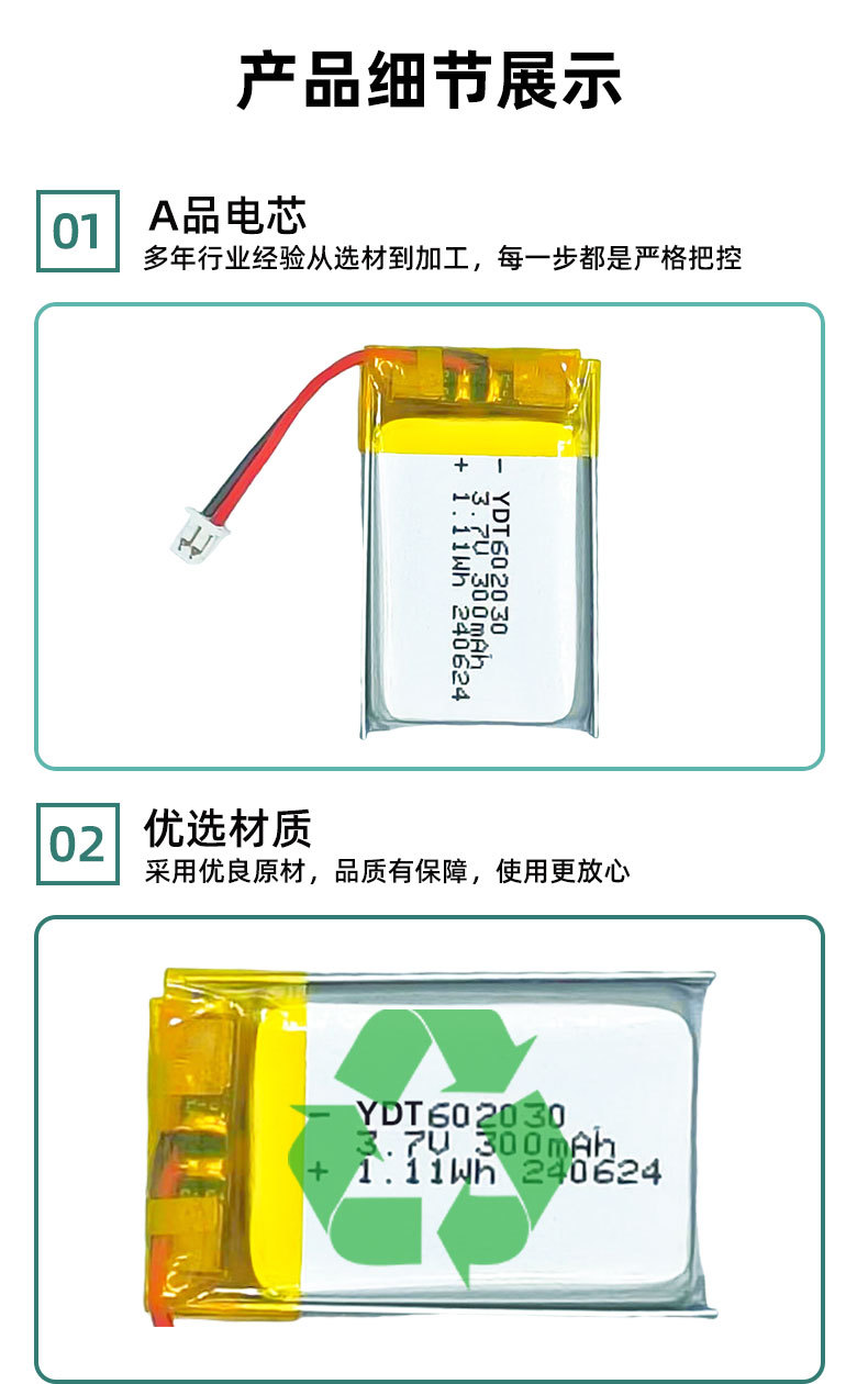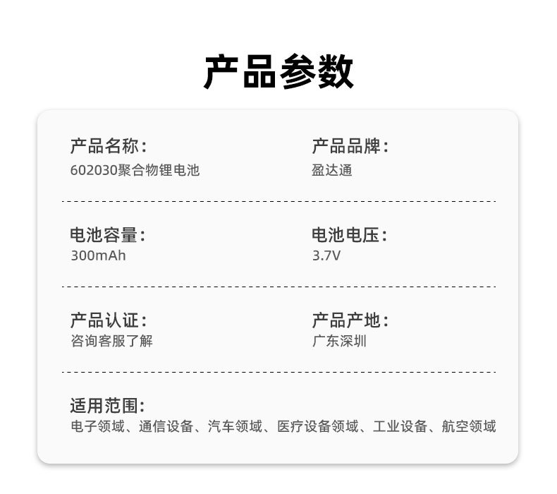 602030 폴리머 리튬 배터리 3.7V300mah UAV 스마트 팔찌 뷰티 악기 배터리 제조업체 공급스토어 가기