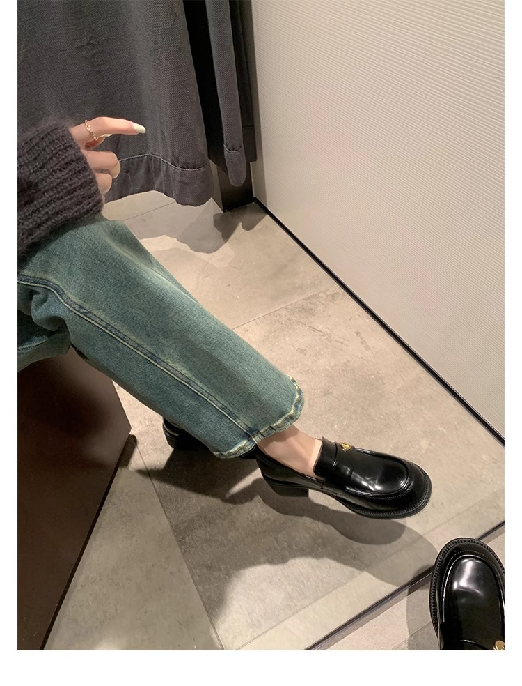 Cowhide 버전 ~ 포도 어머니 가죽 조커 둥근 머리 작은 금 버클 페달 두꺼운 발 뒤꿈치 Lefu 작은 가죽 신발 여성 가을스토어 가기