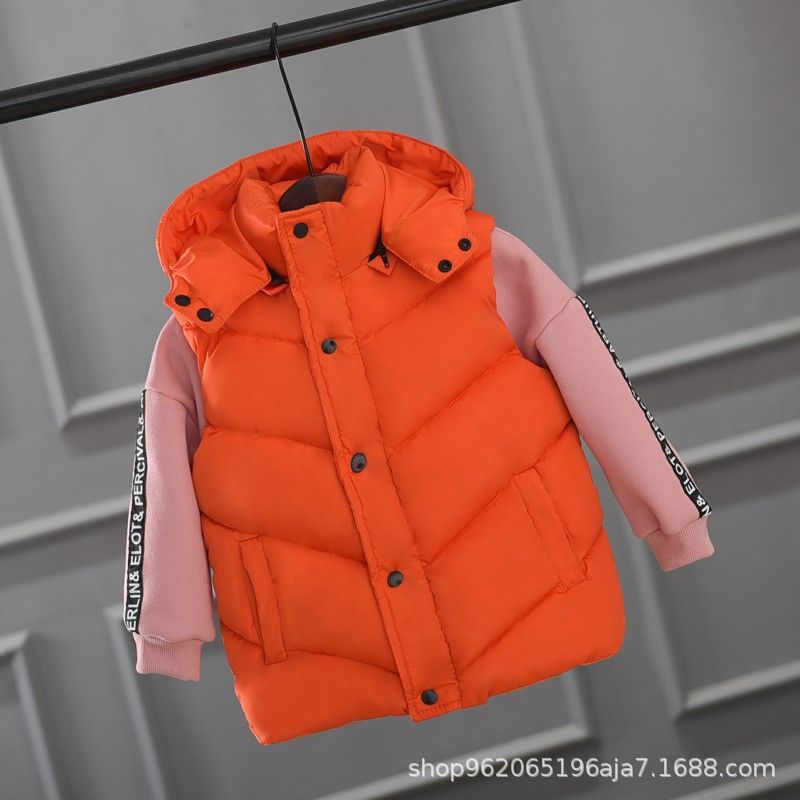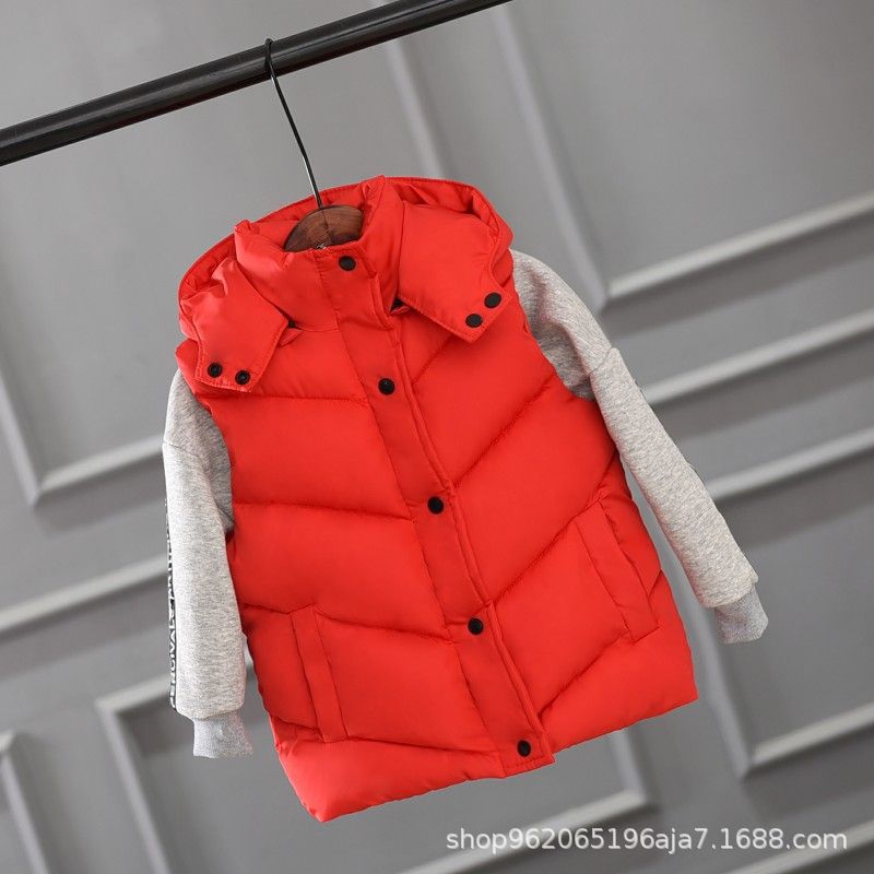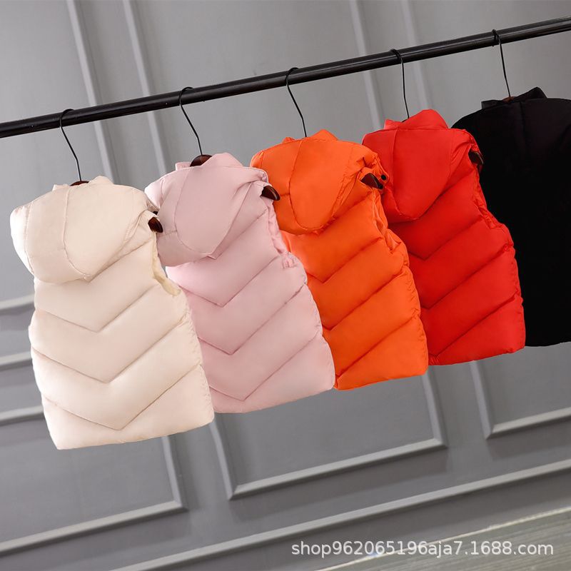 재고 어린이 두꺼운 후드 조끼 조끼 착용 조끼 어깨 클립 어린이 의류 빵 의류 소녀 다운 코튼 패딩 코트 봄, 가을, 겨울
