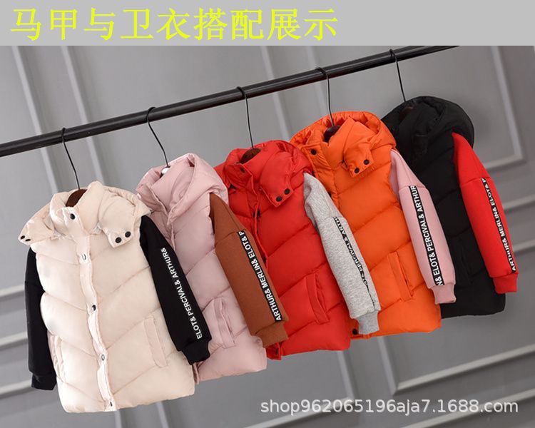 재고 어린이 두꺼운 후드 조끼 조끼 착용 조끼 어깨 클립 어린이 의류 빵 의류 소녀 다운 코튼 패딩 코트 봄, 가을, 겨울스토어 가기