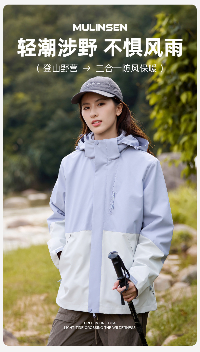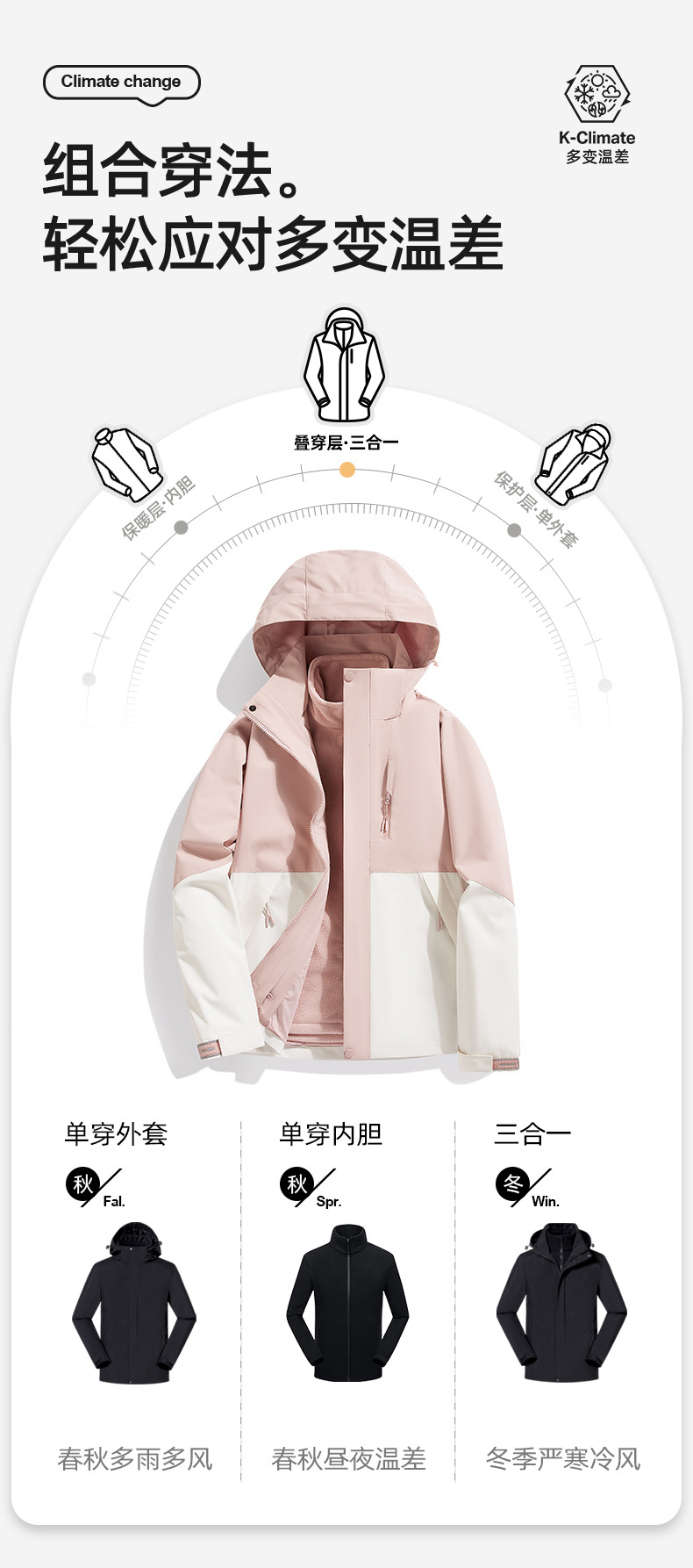 야외 폭행 의류 여성 2024 새로운 3 대 1 탈착식 방풍 등산 재킷 가을과 겨울 스포츠 코트 여성