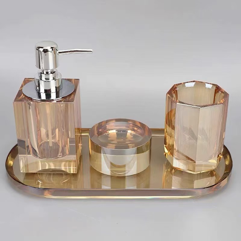 현대 빛 럭셔리 크리스탈 욕실 4 조각 비누 상자 바디 비누 젤 핸드 비누 병 항아리 욕실 장식 장식품