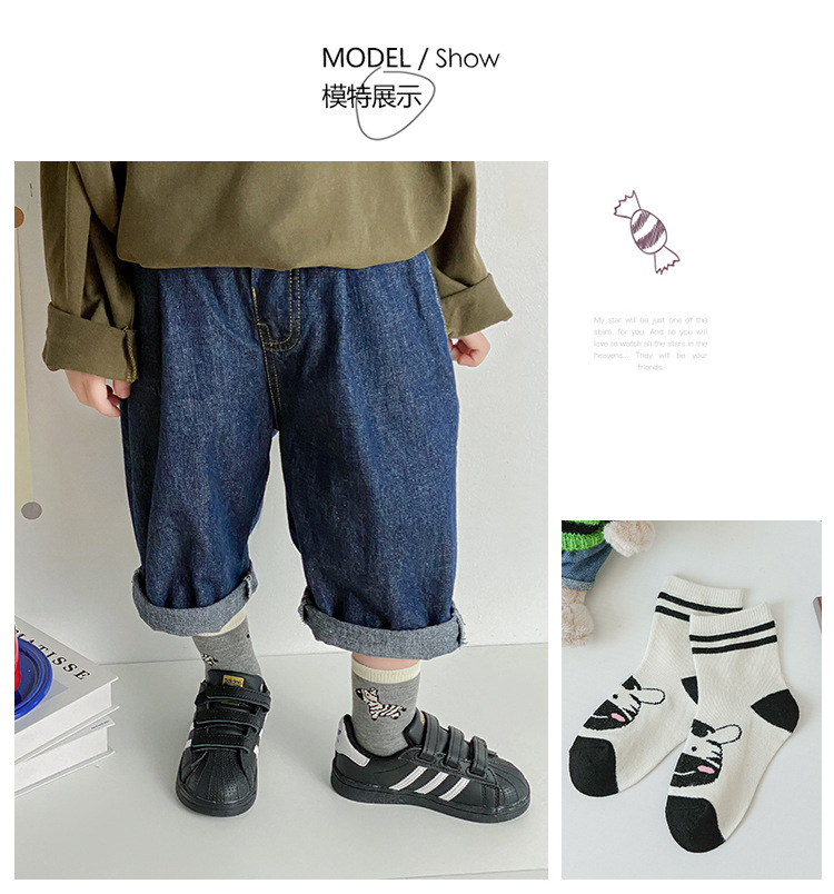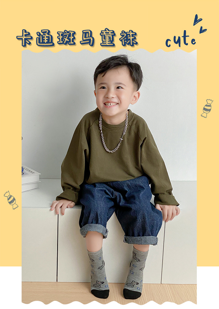 어린이 양말 가을과 겨울 땀 흡수성 탈취제 소년면 양말 학생 만화 얼룩말 튜브 양말 아기 양말 도매스토어 가기