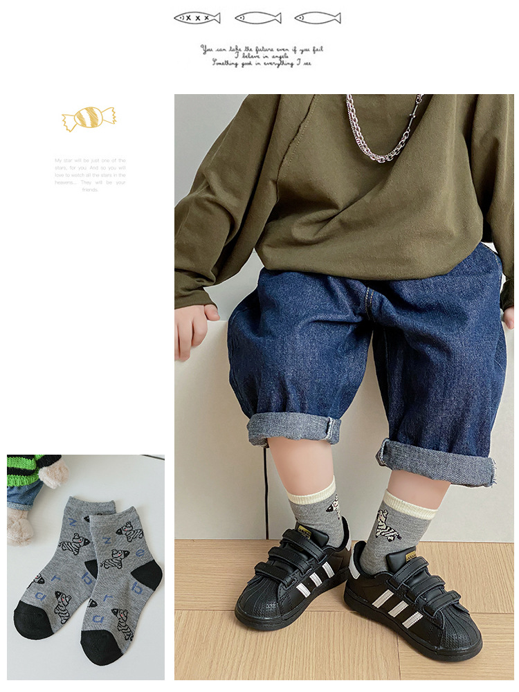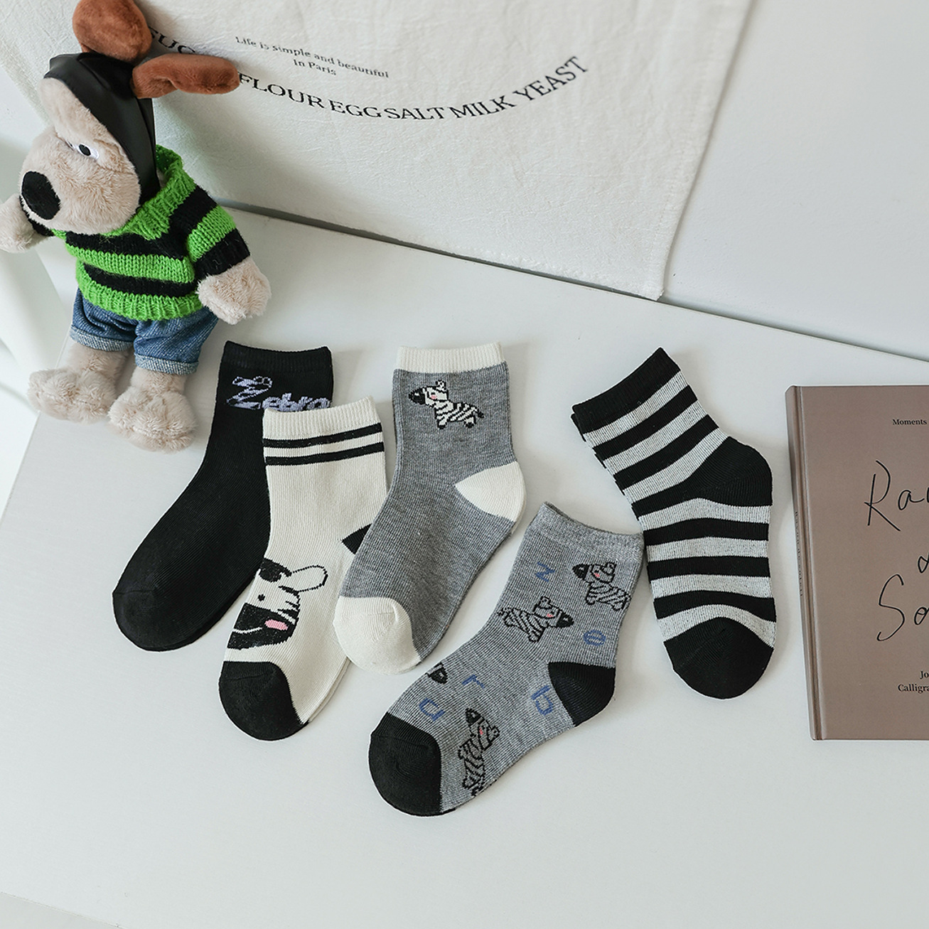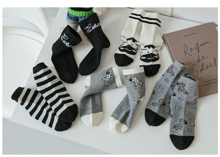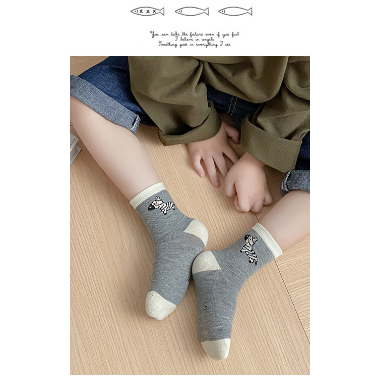 어린이 양말 가을과 겨울 땀 흡수성 탈취제 소년면 양말 학생 만화 얼룩말 튜브 양말 아기 양말 도매