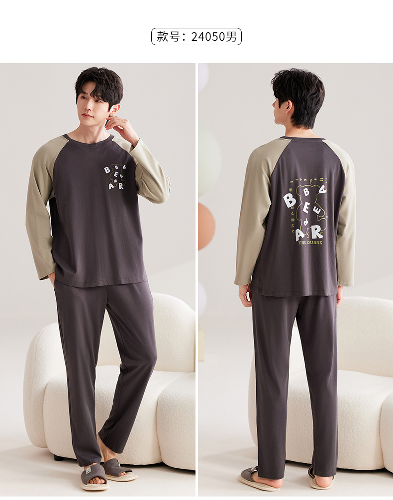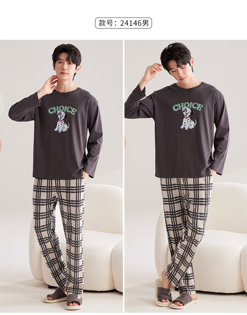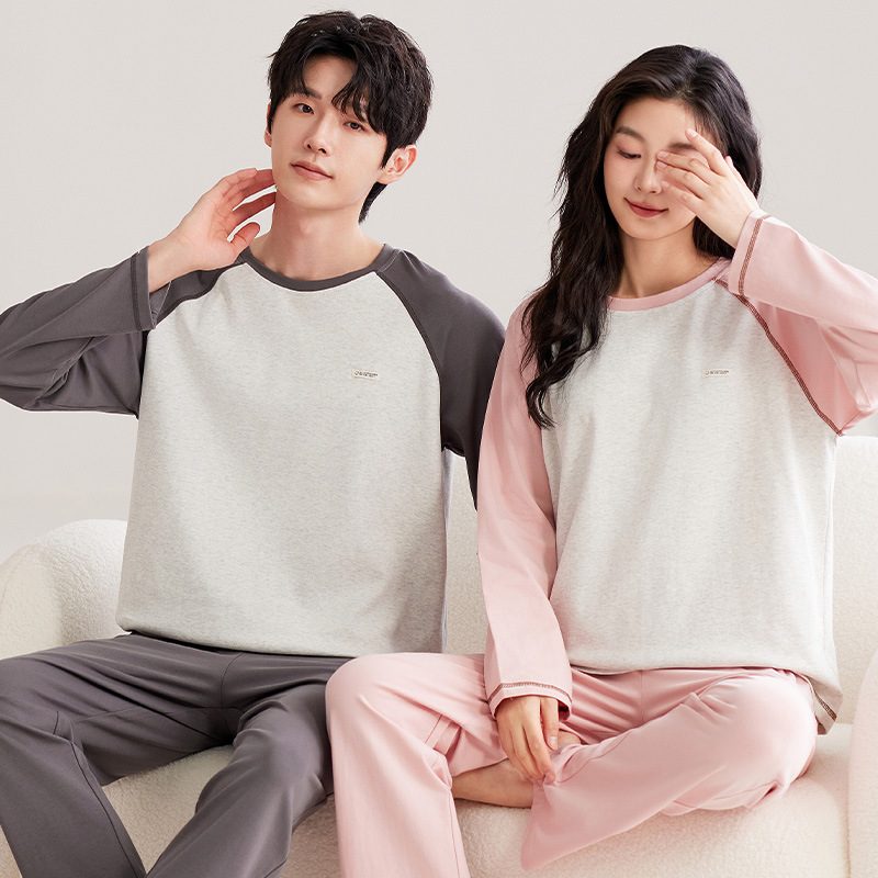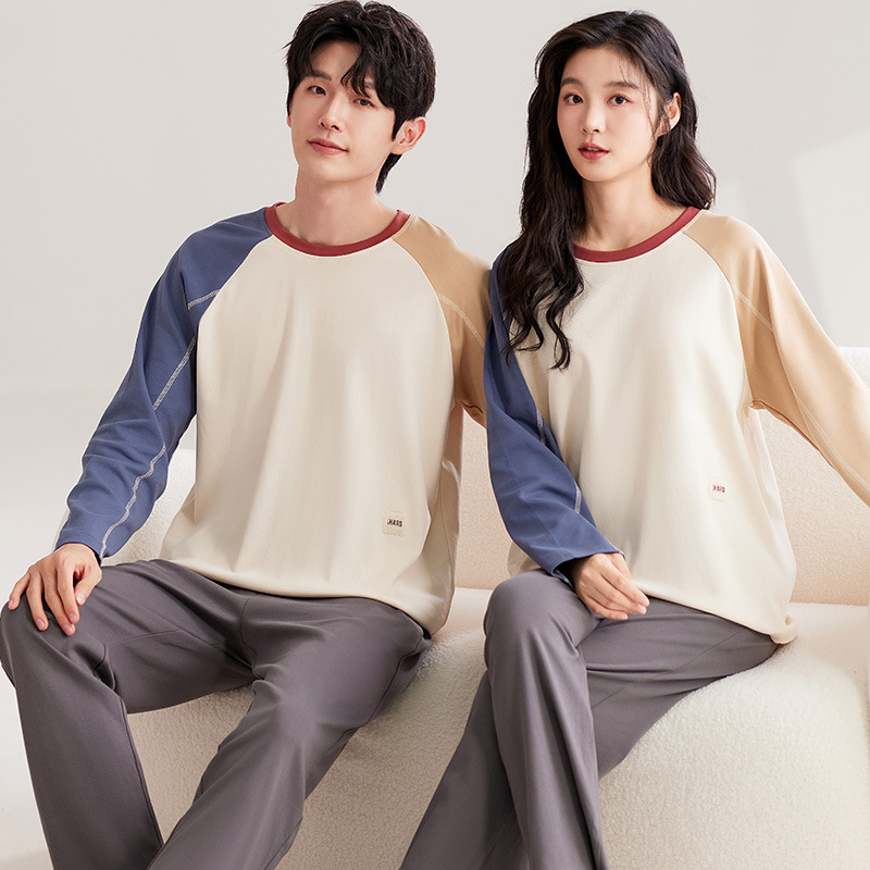 가을 2024 년 새 잠옷 홈 옷 긴 소매 남성 커플 파자마 긴 소매 바지를 입을 수 세트스토어 가기