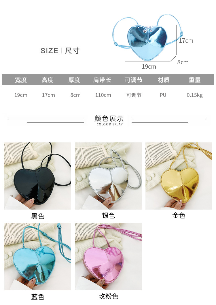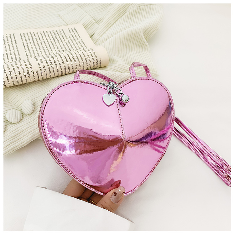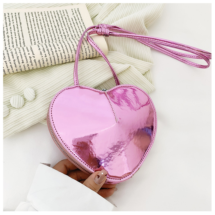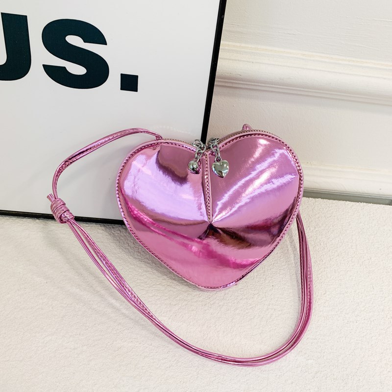 어린이 작은 가방 창조적 인 사랑 어깨 가방 2024 새로운 패션 광택 개인화 된 크로스 바디 가방 소녀의 빨간 가방
