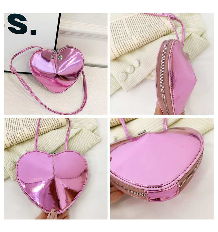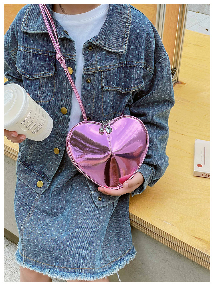 어린이 작은 가방 창조적 인 사랑 어깨 가방 2024 새로운 패션 광택 개인화 된 크로스 바디 가방 소녀의 빨간 가방스토어 가기