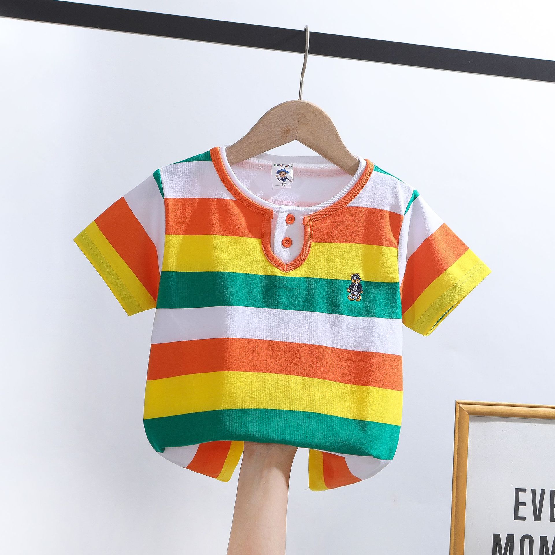 아동복 아동용 셔츠 반팔 소년의 여름 코튼 티셔츠 반팔 옷깃 줄무늬 맞춤형 중대형 어린이 폴로 셔츠스토어 가기