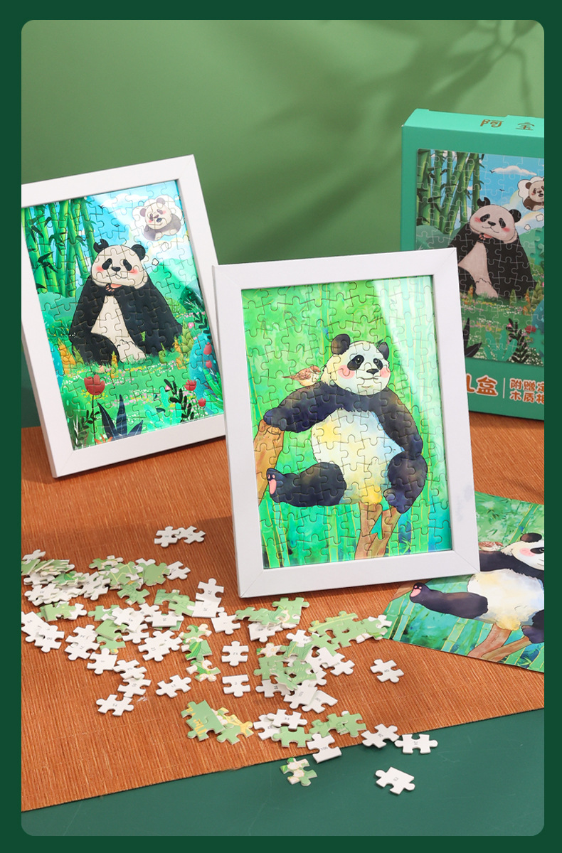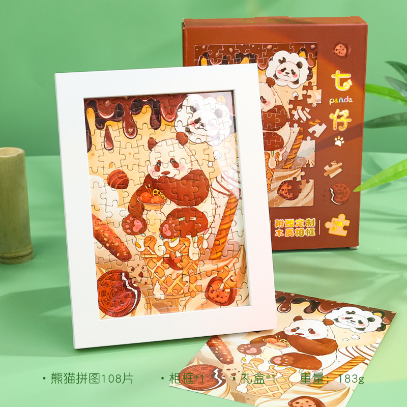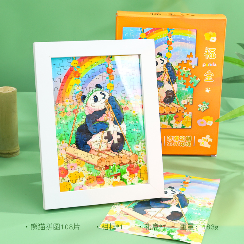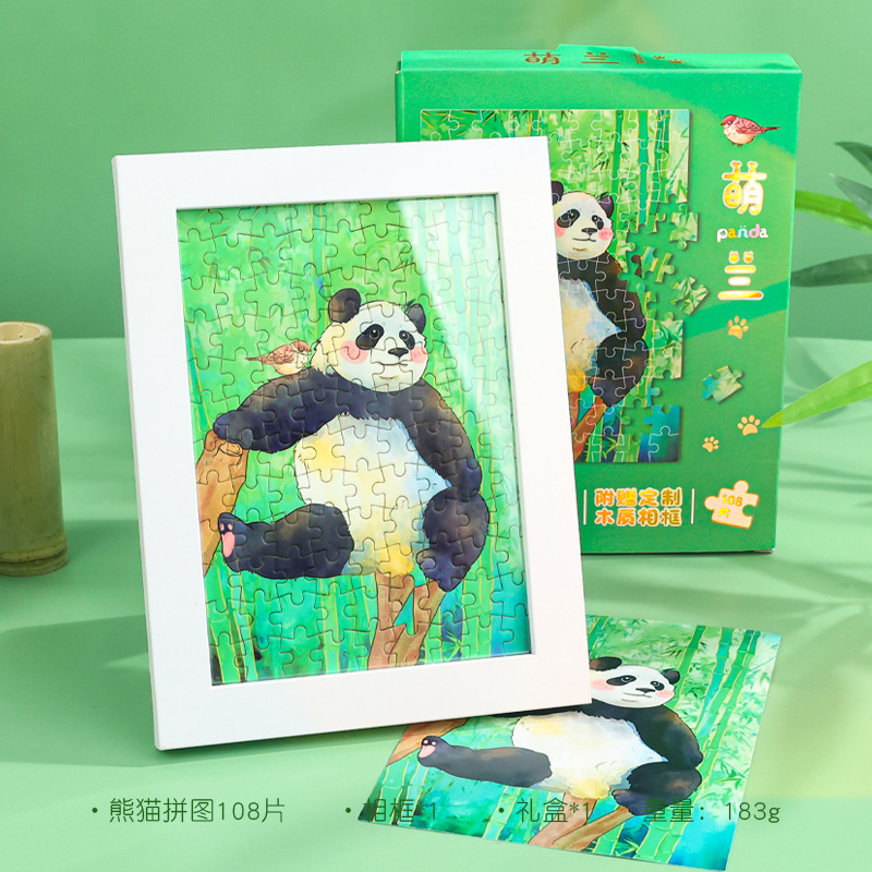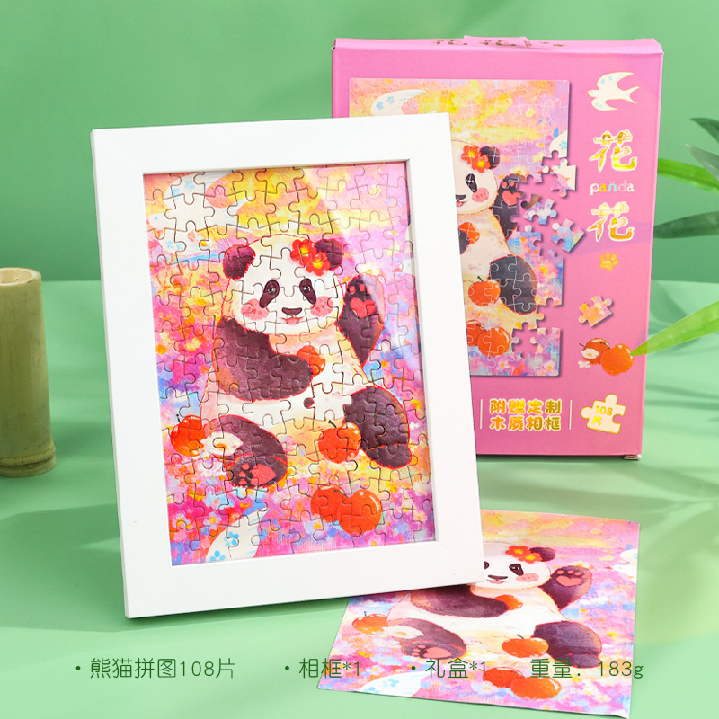 팬더 직소 퍼즐 선물 상자 사진 프레임 장식품 108 조각 아기 조기 교육 뇌 어린이 DIY 수제 장난감스토어 가기
