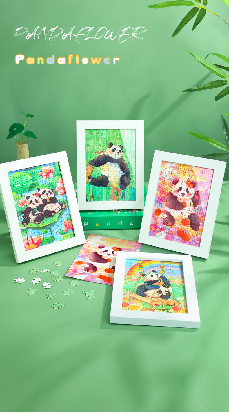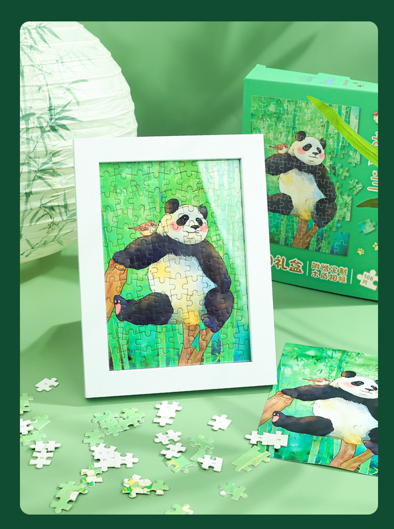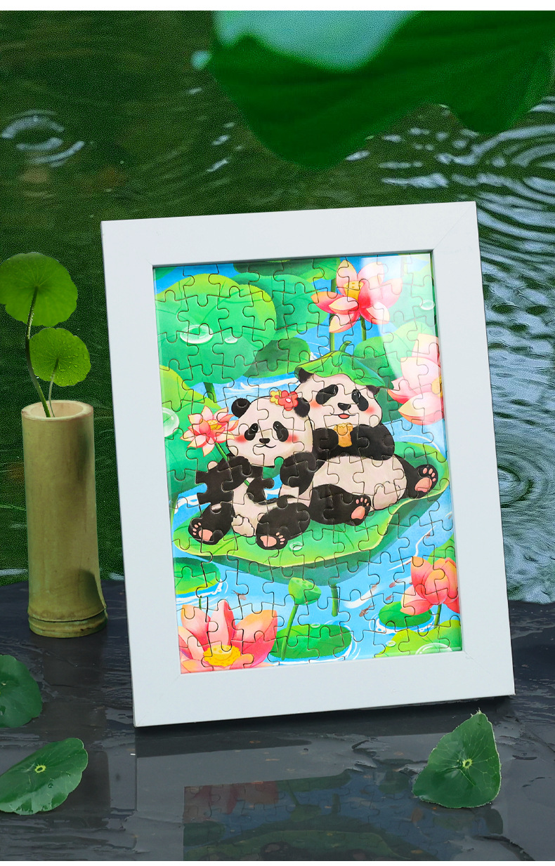 팬더 직소 퍼즐 선물 상자 사진 프레임 장식품 108 조각 아기 조기 교육 뇌 어린이 DIY 수제 장난감스토어 가기
