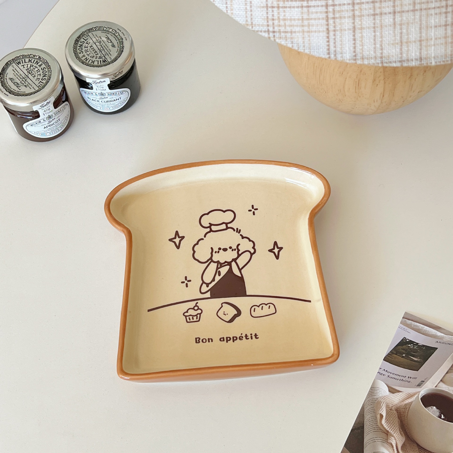 Ins 스타일 한국 토스트 귀여운 강아지 일러스트 디너 플레이트 디저트 플레이트 과일 플레이트 빵 모양 창조적 인 세라믹 플레이트