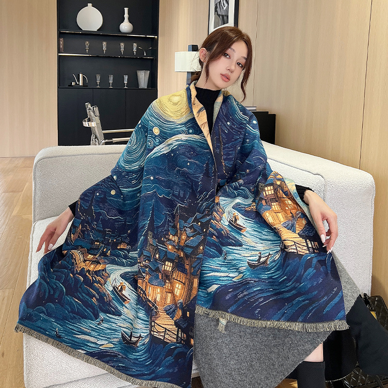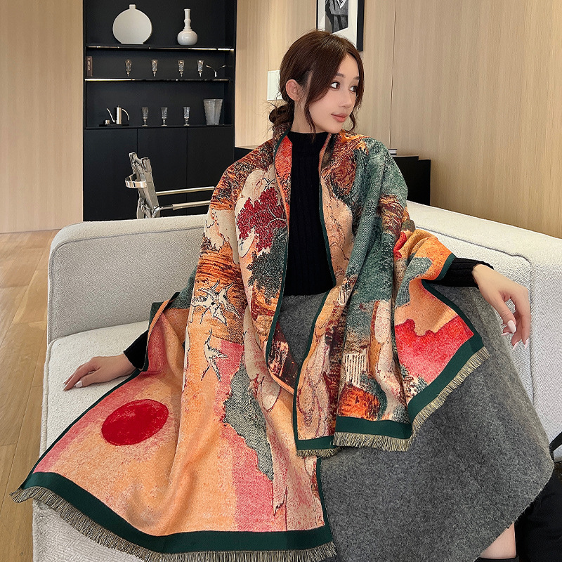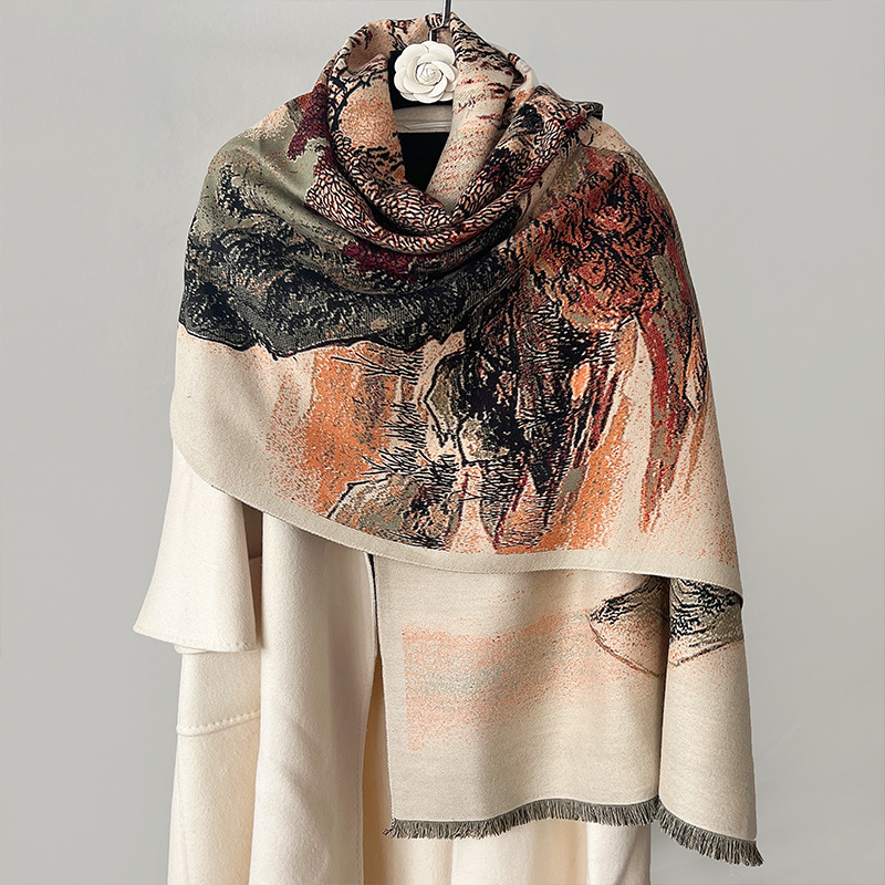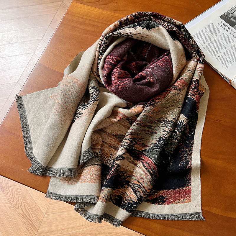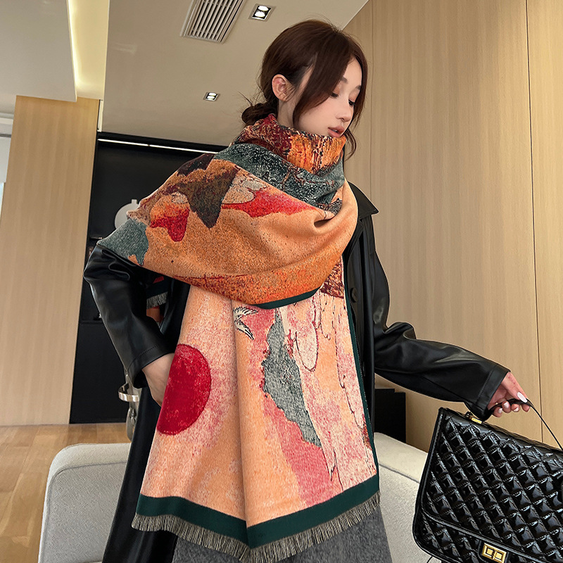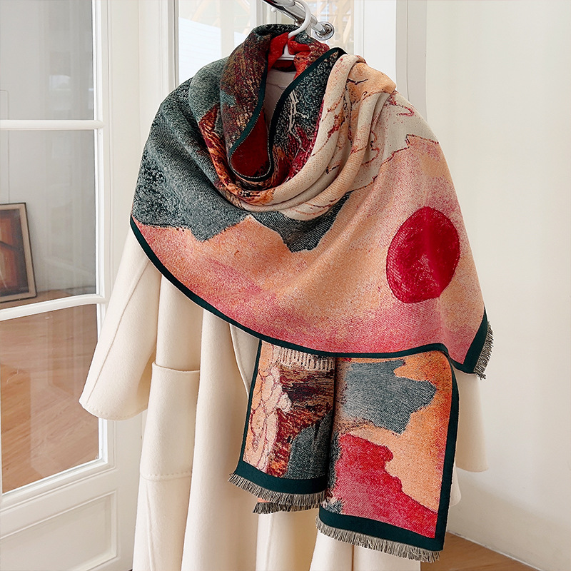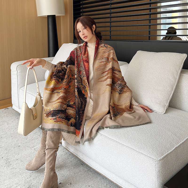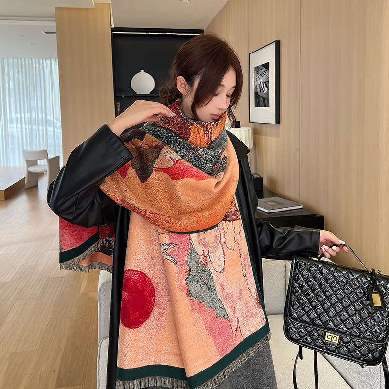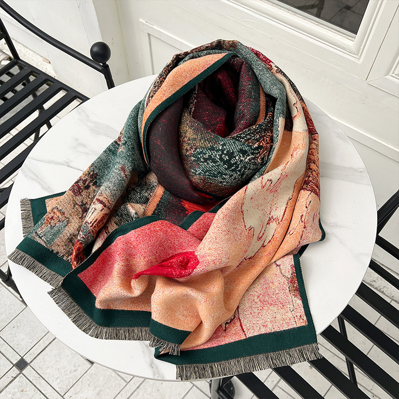 새로운 한국식 모조 캐시미어 스카프 여성의 겨울 따뜻한 양면 스카프 방풍 냉에어컨 목도리