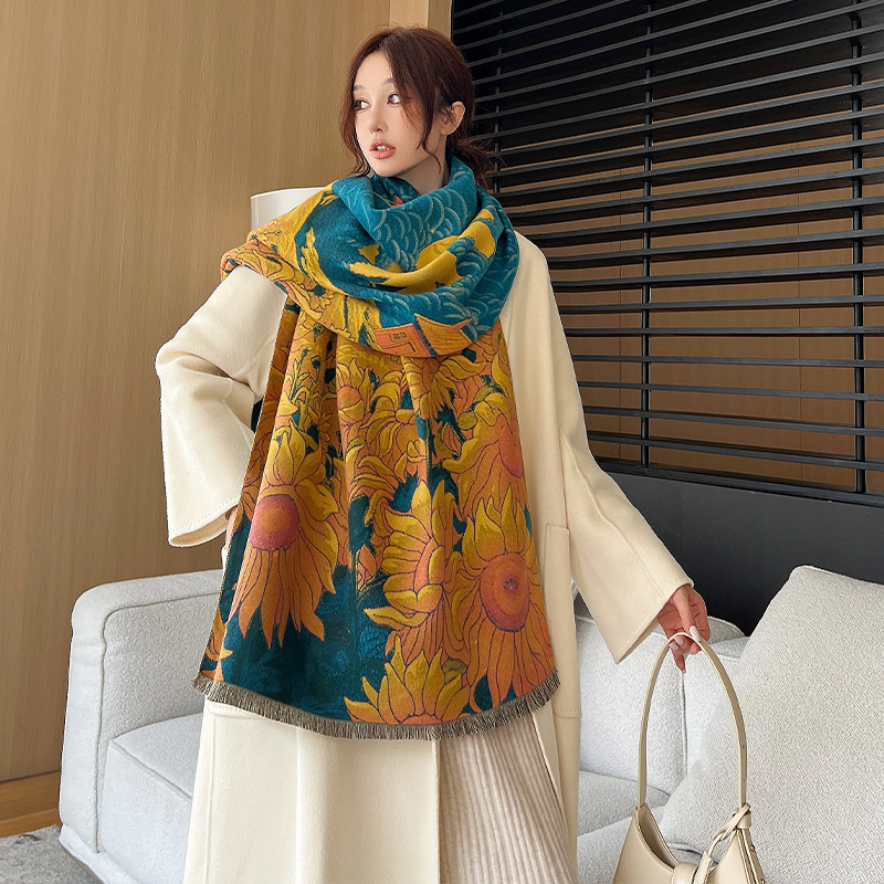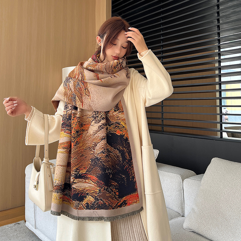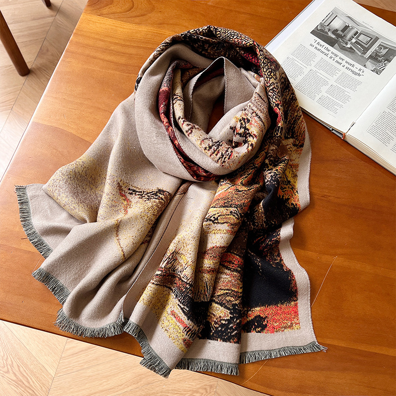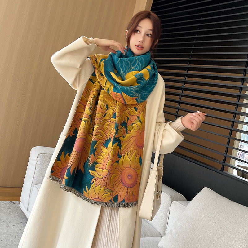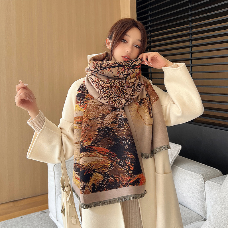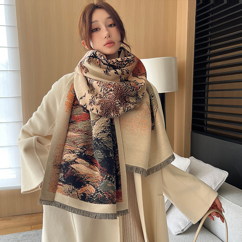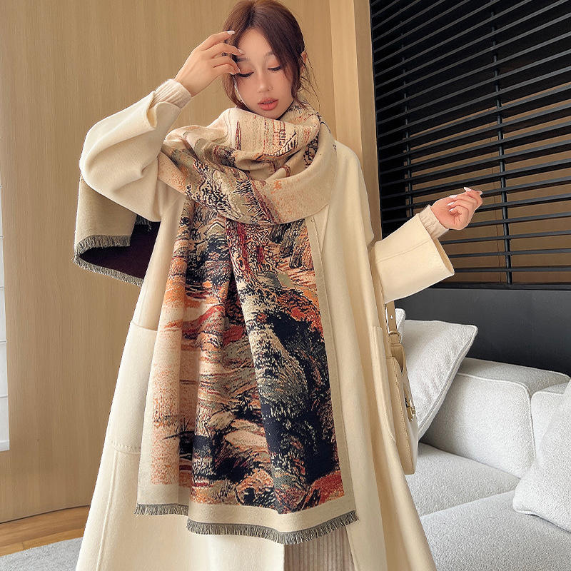 새로운 한국식 모조 캐시미어 스카프 여성의 겨울 따뜻한 양면 스카프 방풍 냉에어컨 목도리스토어 가기