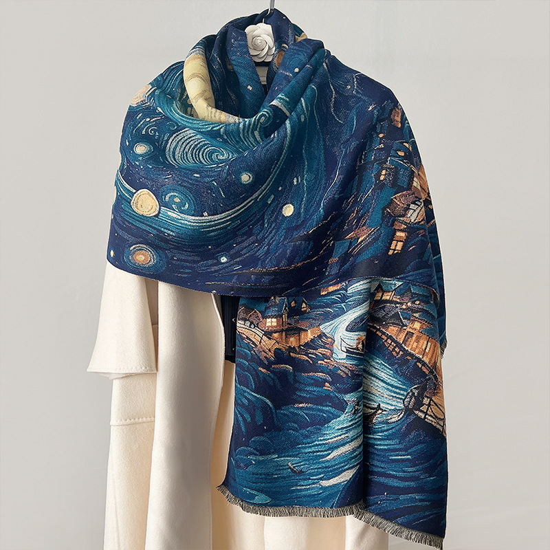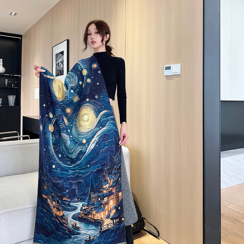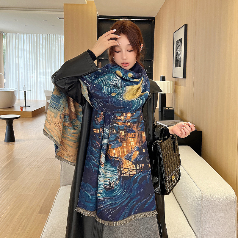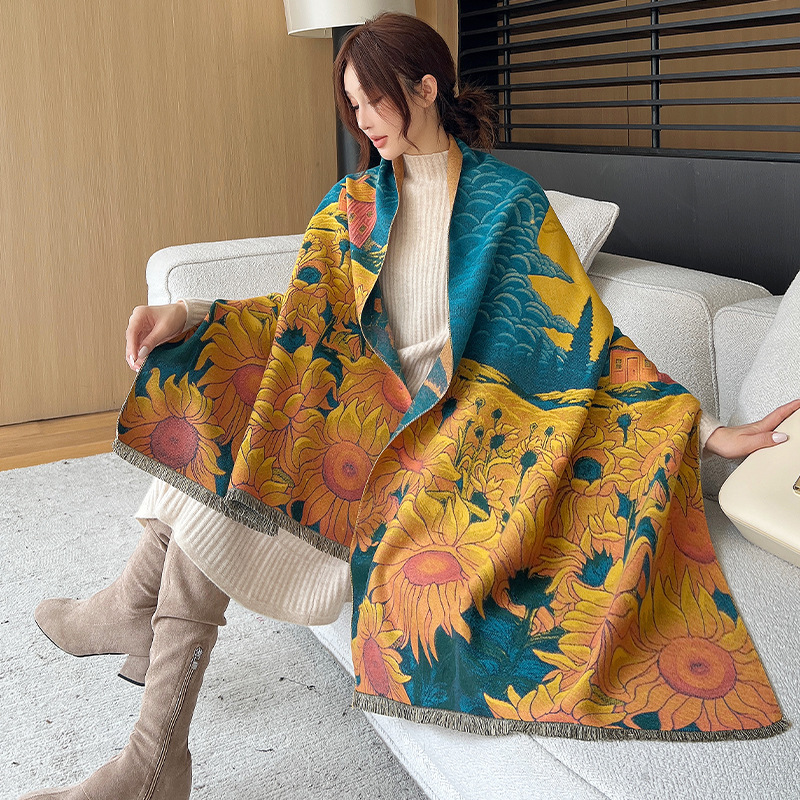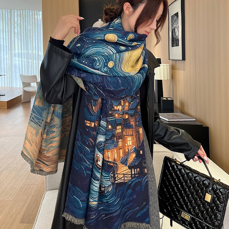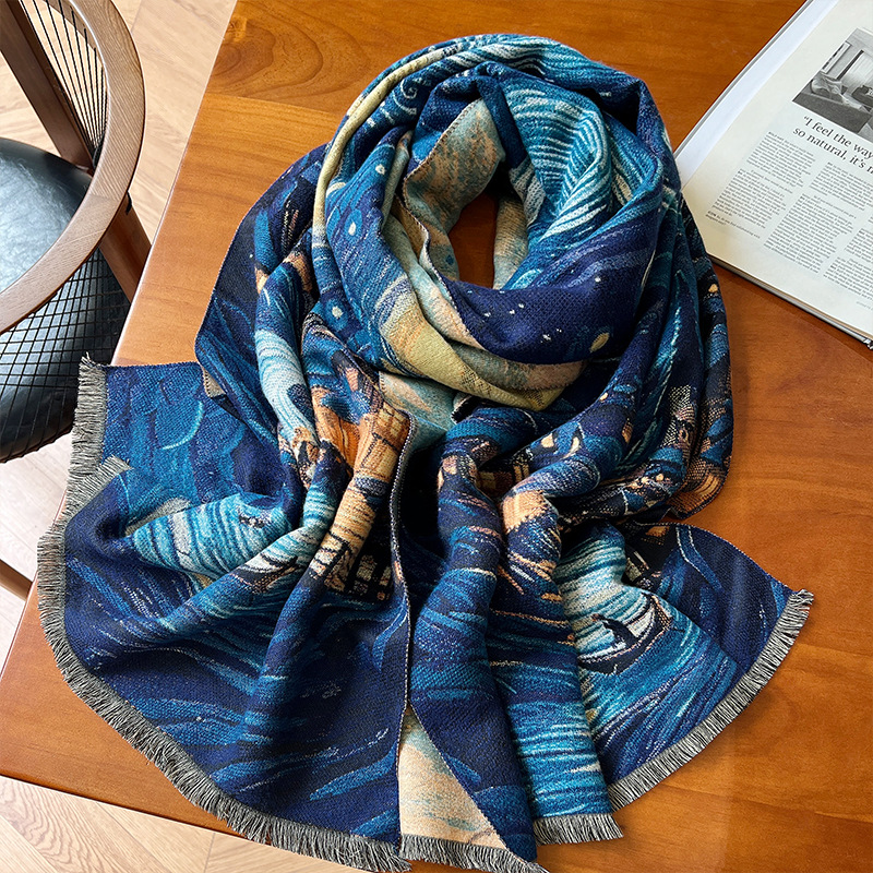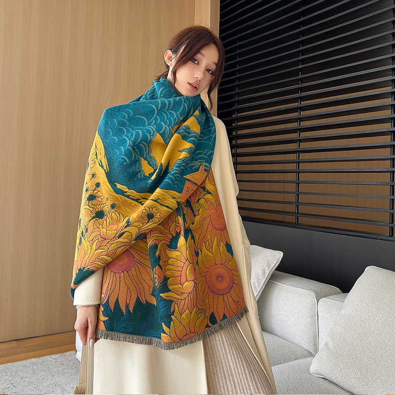 새로운 한국식 모조 캐시미어 스카프 여성의 겨울 따뜻한 양면 스카프 방풍 냉에어컨 목도리스토어 가기