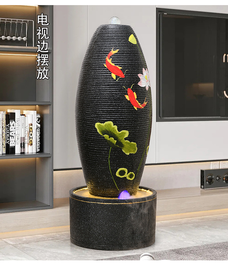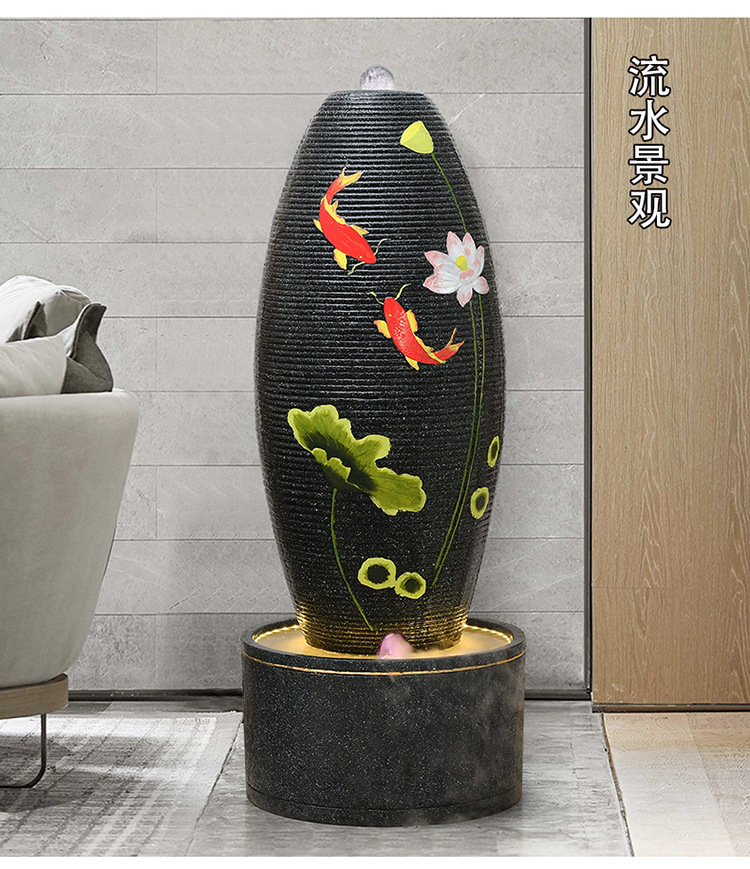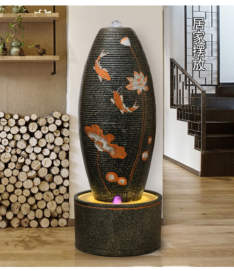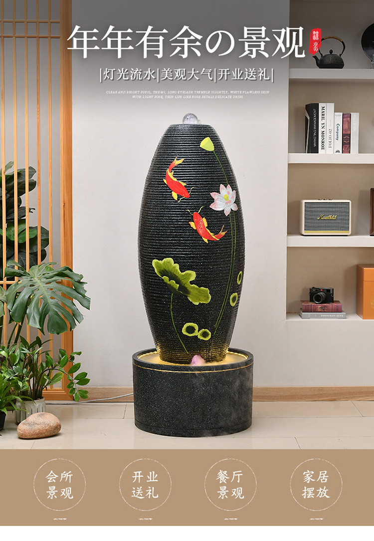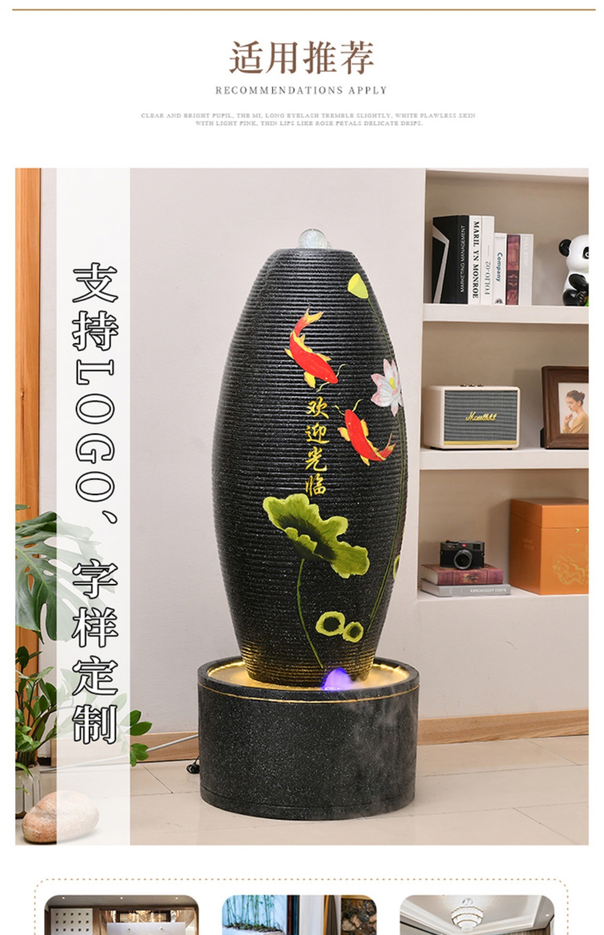 러닝 워터 분수 거실 현관 사무실 포춘 장식품 행운의 계란 가정 장식 가습기 바닥 오프닝 선물스토어 가기