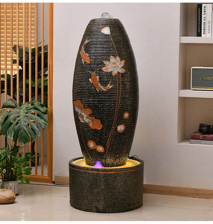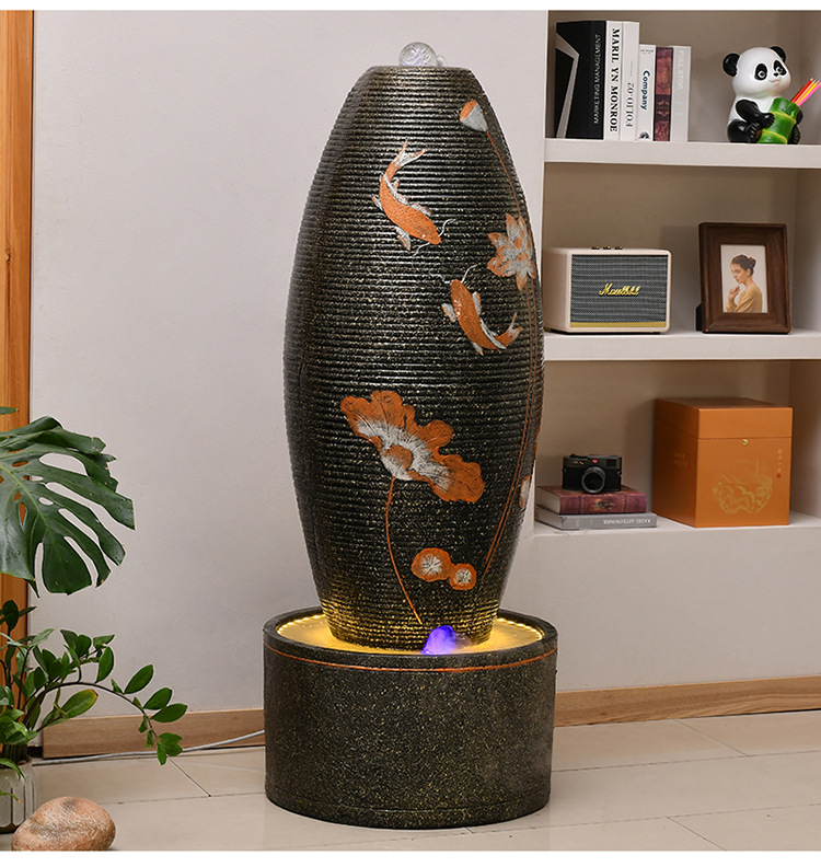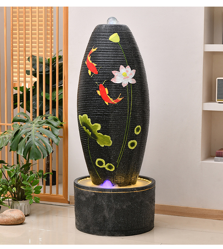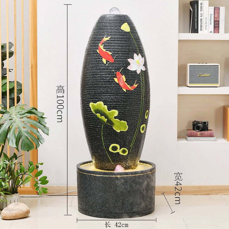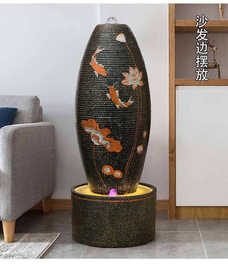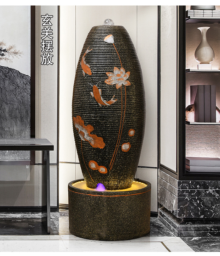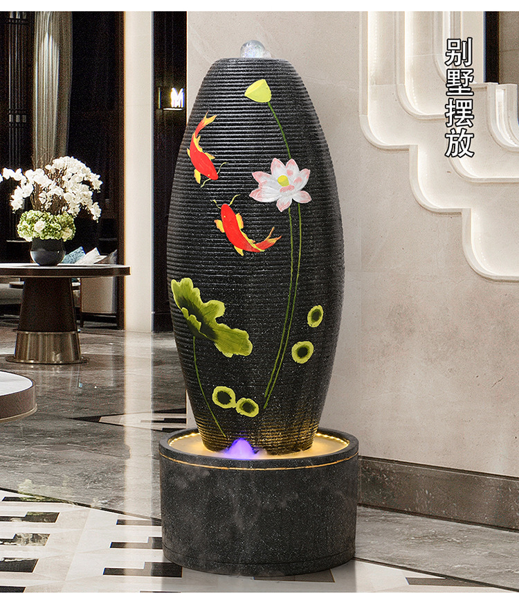 러닝 워터 분수 거실 현관 사무실 포춘 장식품 행운의 계란 가정 장식 가습기 바닥 오프닝 선물스토어 가기
