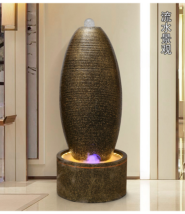 러닝 워터 분수 거실 현관 사무실 포춘 장식품 행운의 계란 가정 장식 가습기 바닥 오프닝 선물