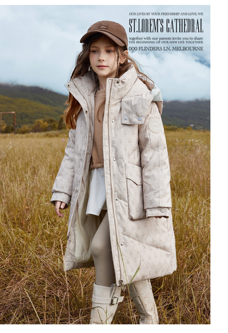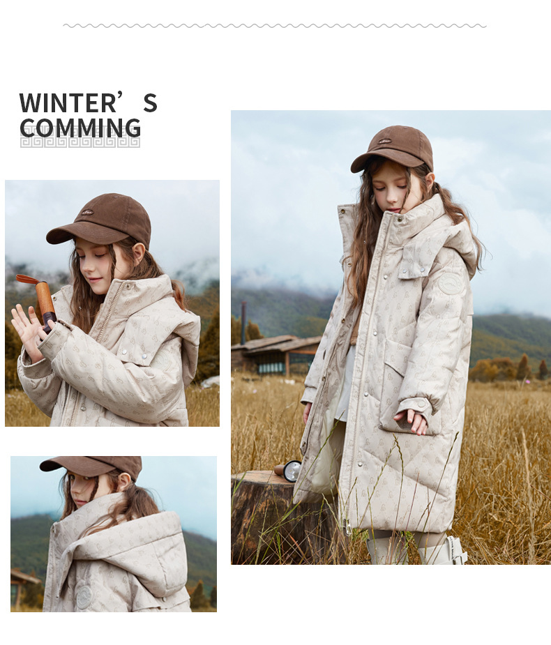 어린이 다운 자켓 소녀 중 · 롱 한국 스타일 중풍 · 대형 어린이를위한 흰색 오리 다운 재킷스토어 가기