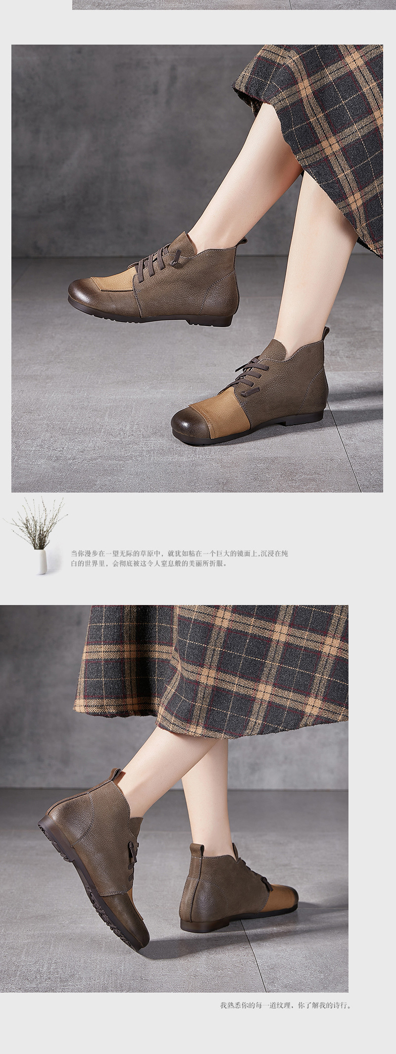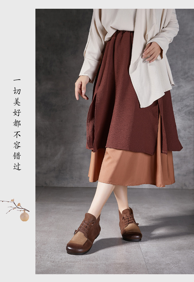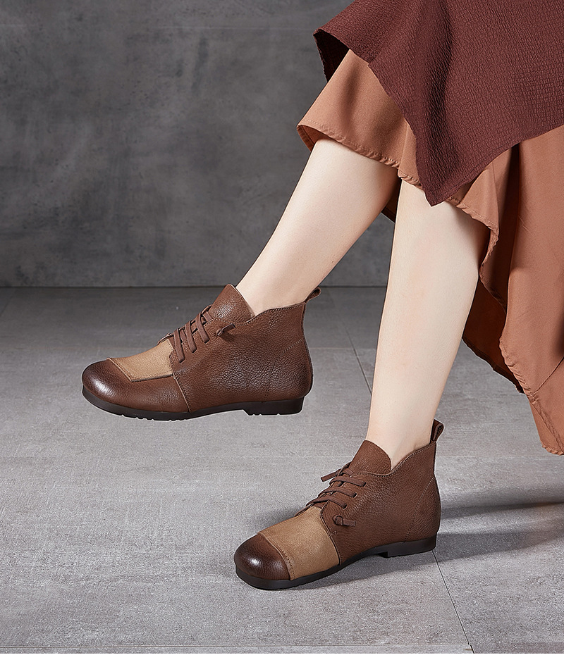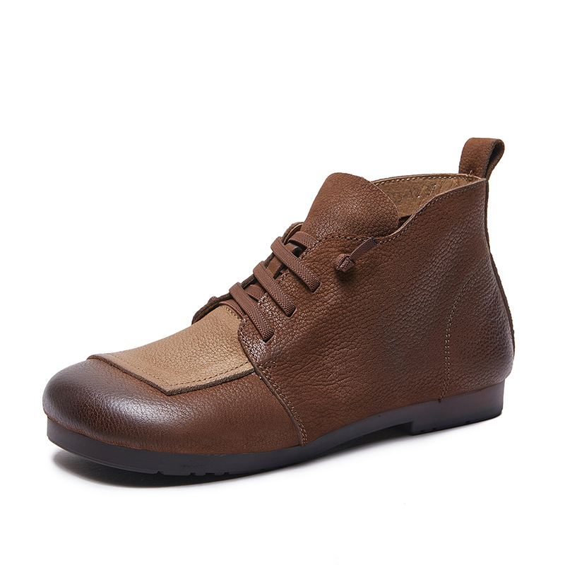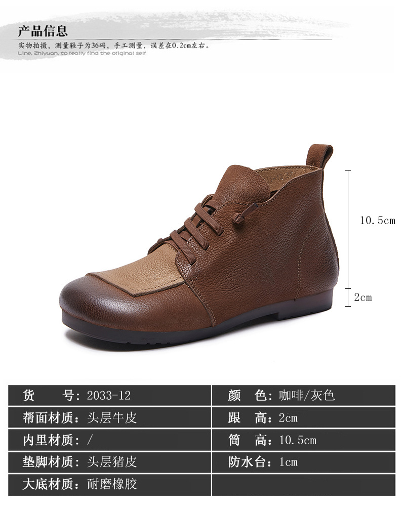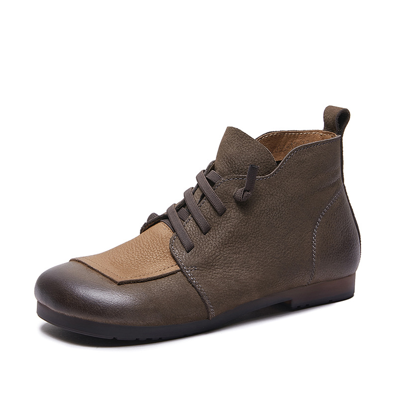 플래티넘 디니 발목 부츠 여성 2024 년 새로운 가을 및 겨울 부드러운 바닥 부드러운 가죽 플랫 레트로 엄마 신발 헤드 레이어 카우보이 마틴 부츠스토어 가기