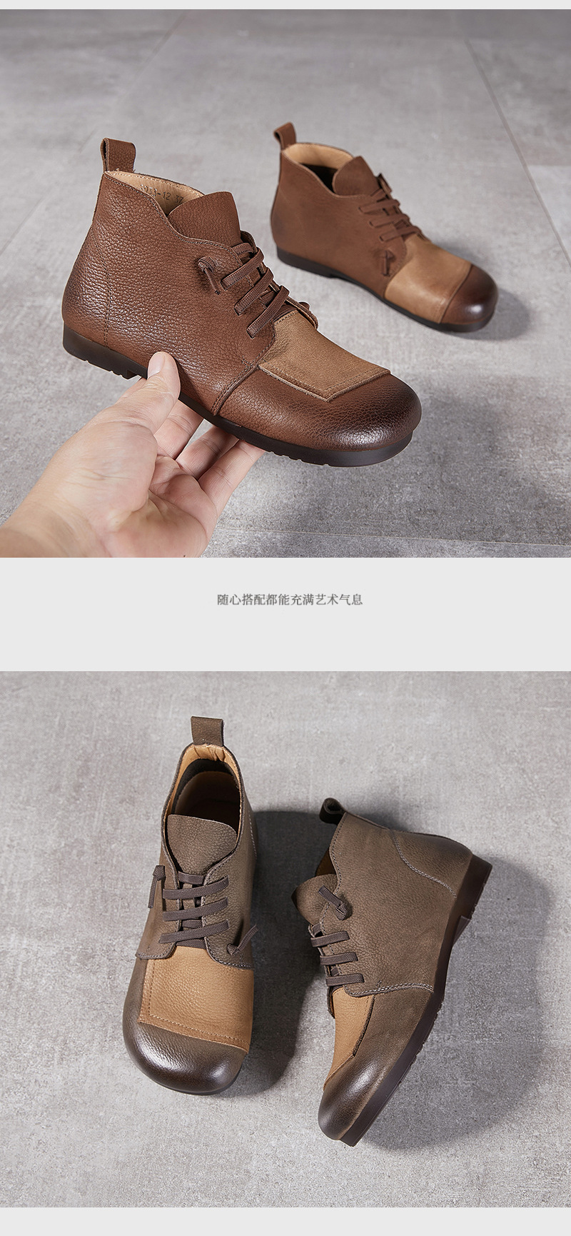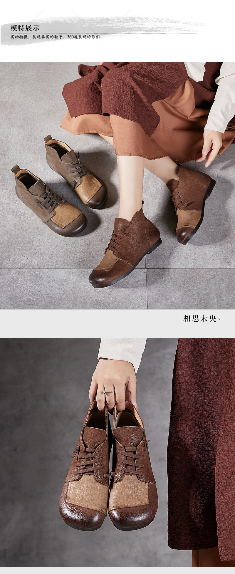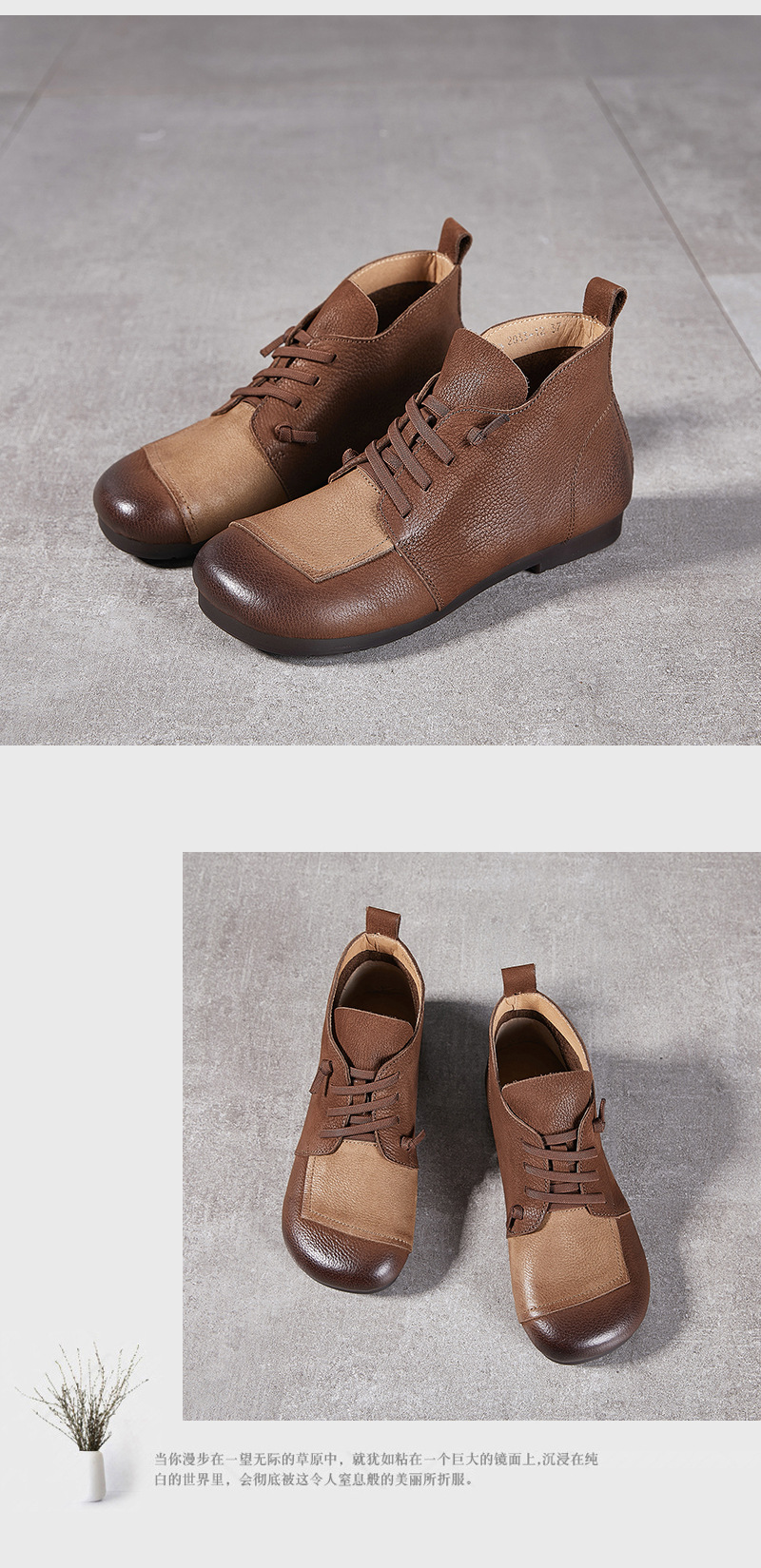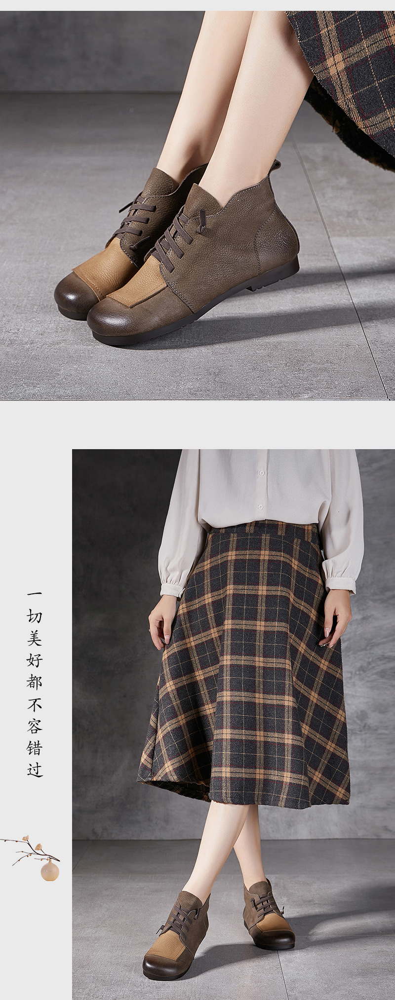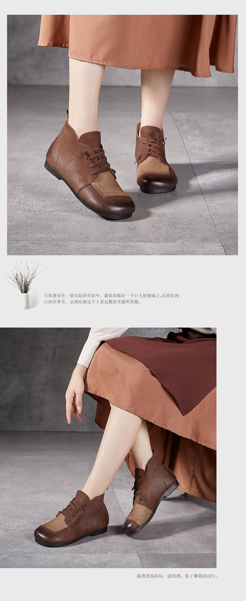 플래티넘 디니 발목 부츠 여성 2024 년 새로운 가을 및 겨울 부드러운 바닥 부드러운 가죽 플랫 레트로 엄마 신발 헤드 레이어 카우보이 마틴 부츠스토어 가기