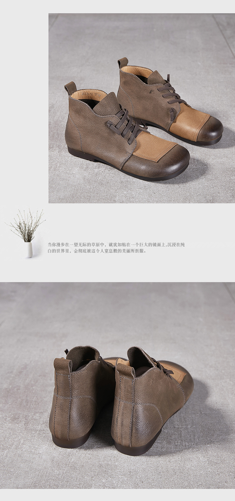 플래티넘 디니 발목 부츠 여성 2024 년 새로운 가을 및 겨울 부드러운 바닥 부드러운 가죽 플랫 레트로 엄마 신발 헤드 레이어 카우보이 마틴 부츠