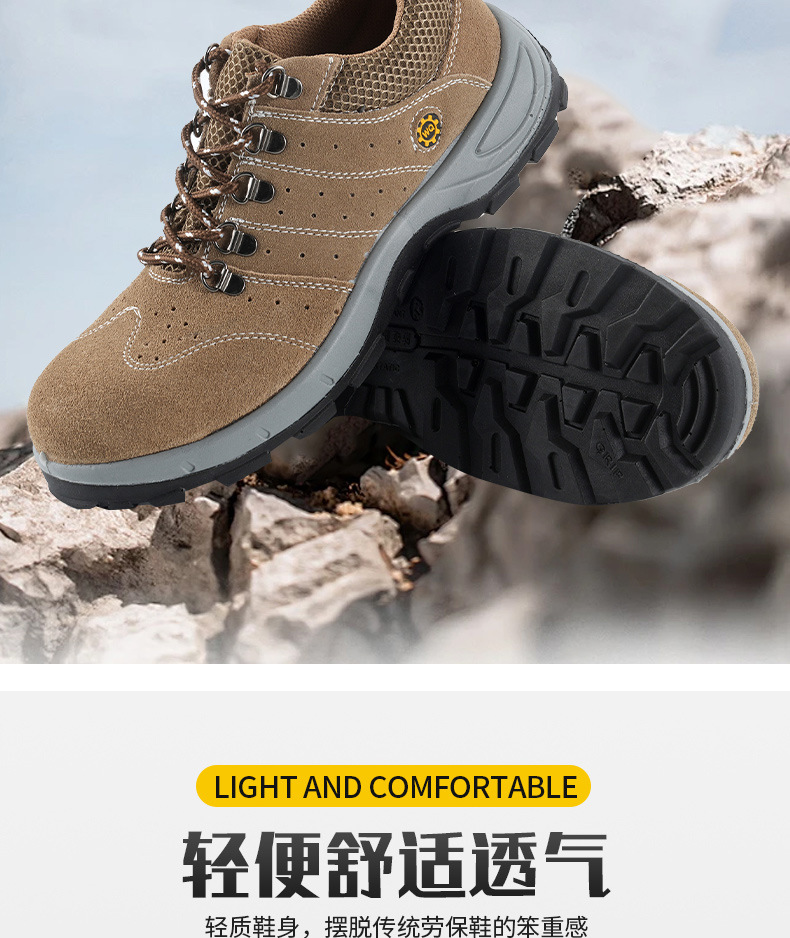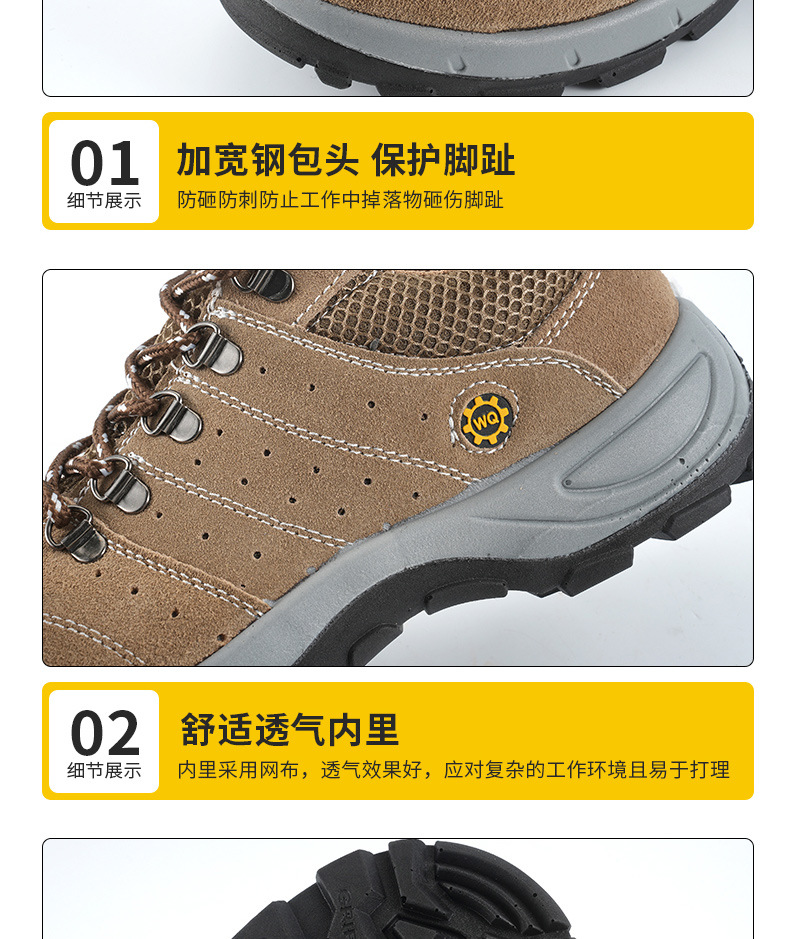 Four Seasons Cowhide 노동 보호 신발 남성용 스매시 방지 핀 방지 솔리드 바닥 내마모성 미끄럼 통기성 편안한 안전 작업 신발스토어 가기