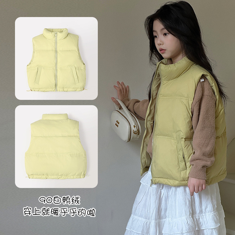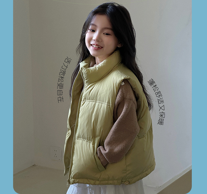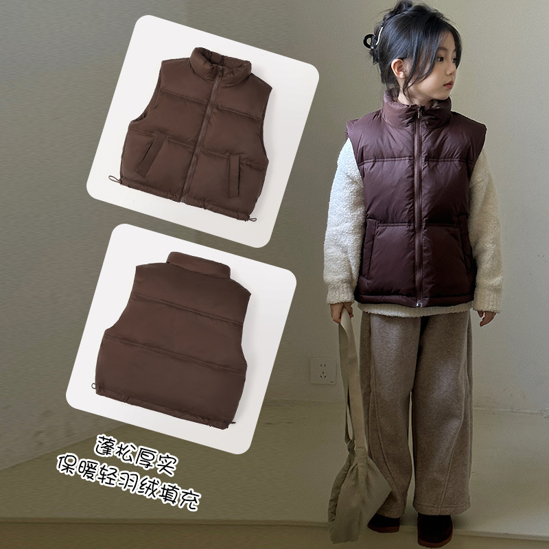 2025 가을 겨울 신상 남녀 아동용 중대형 어린이 조끼 따뜻한 다운 재킷 조끼 내부 짧은 스타일 다용도스토어 가기