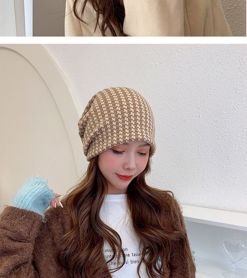 • 가을 겨울 매달린 귀 [블랙 물떼새 격자] 다기능 플러스 벨벳 스타일