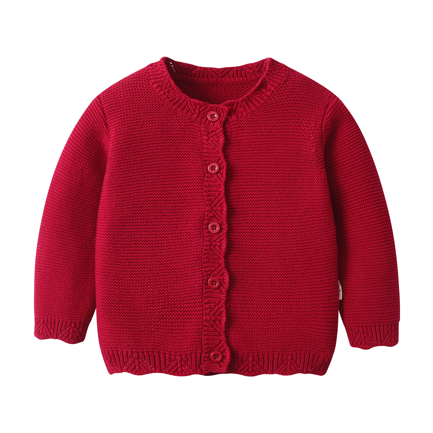 2024 가을 올 매치 아기 소녀 어린이 둥근 목 뜨개질 빨간 니트 면화 긴 소매 카디건 코트 스웨터스토어 가기