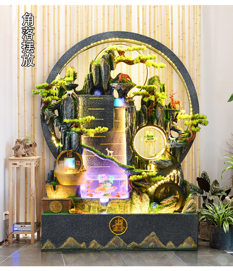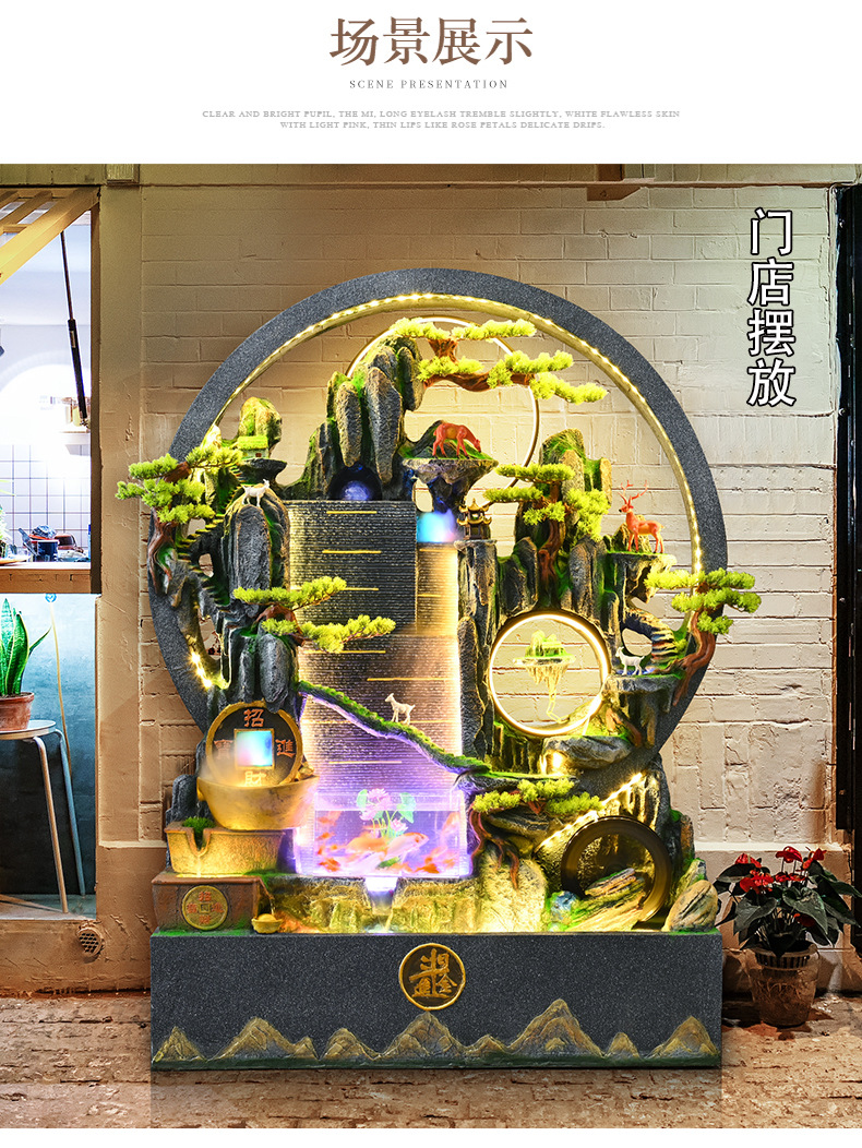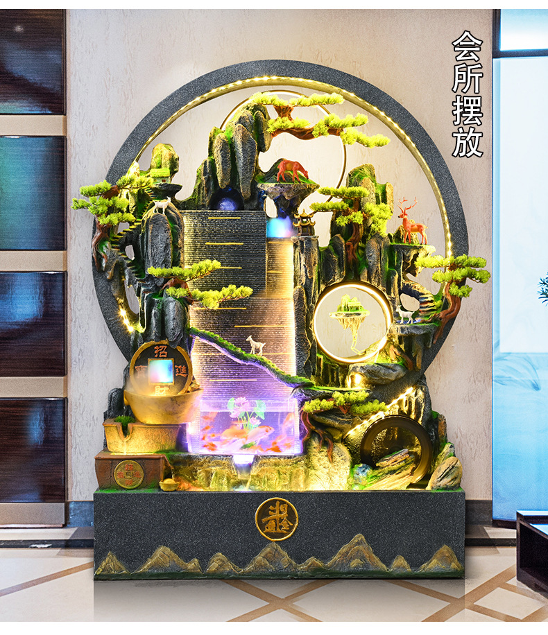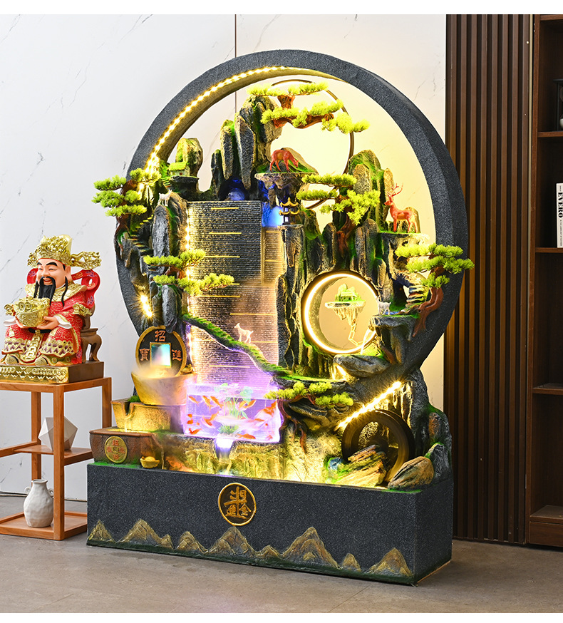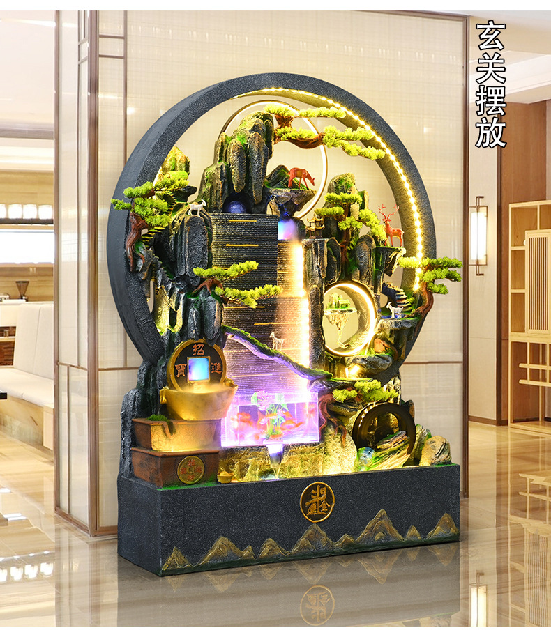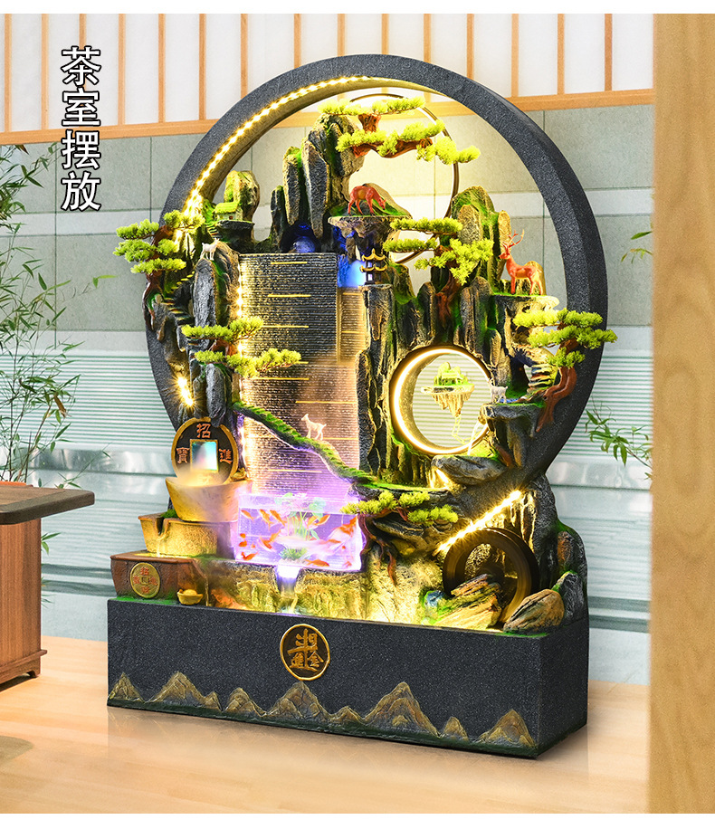 대형 바위 흐르는 물 분수 바닥 물고기 연못 안뜰 발코니 순환 물 실내 및 야외 장식품 현관 물고기 탱크 중국 스타일스토어 가기