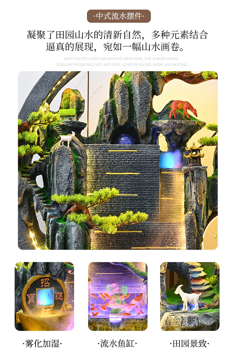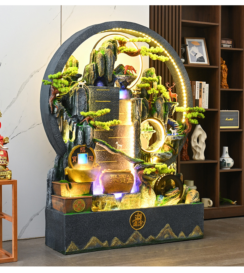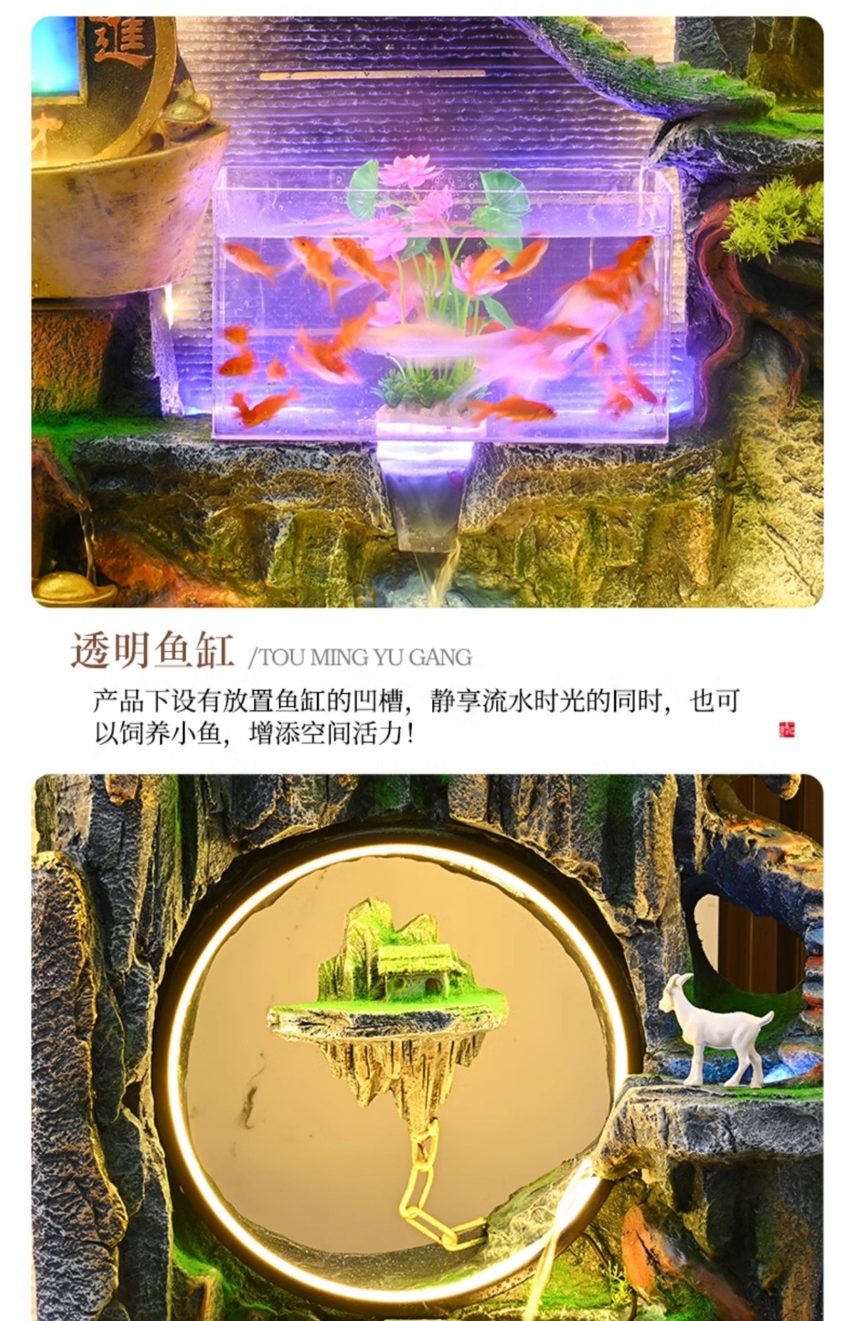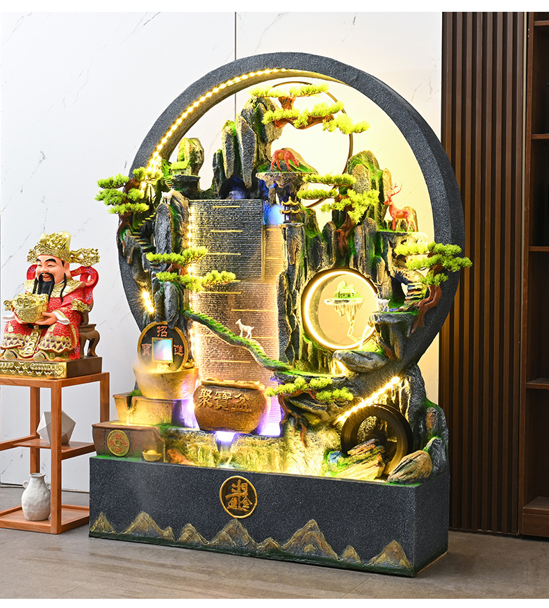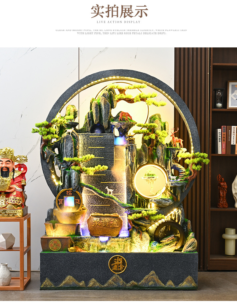 대형 바위 흐르는 물 분수 바닥 물고기 연못 안뜰 발코니 순환 물 실내 및 야외 장식품 현관 물고기 탱크 중국 스타일스토어 가기