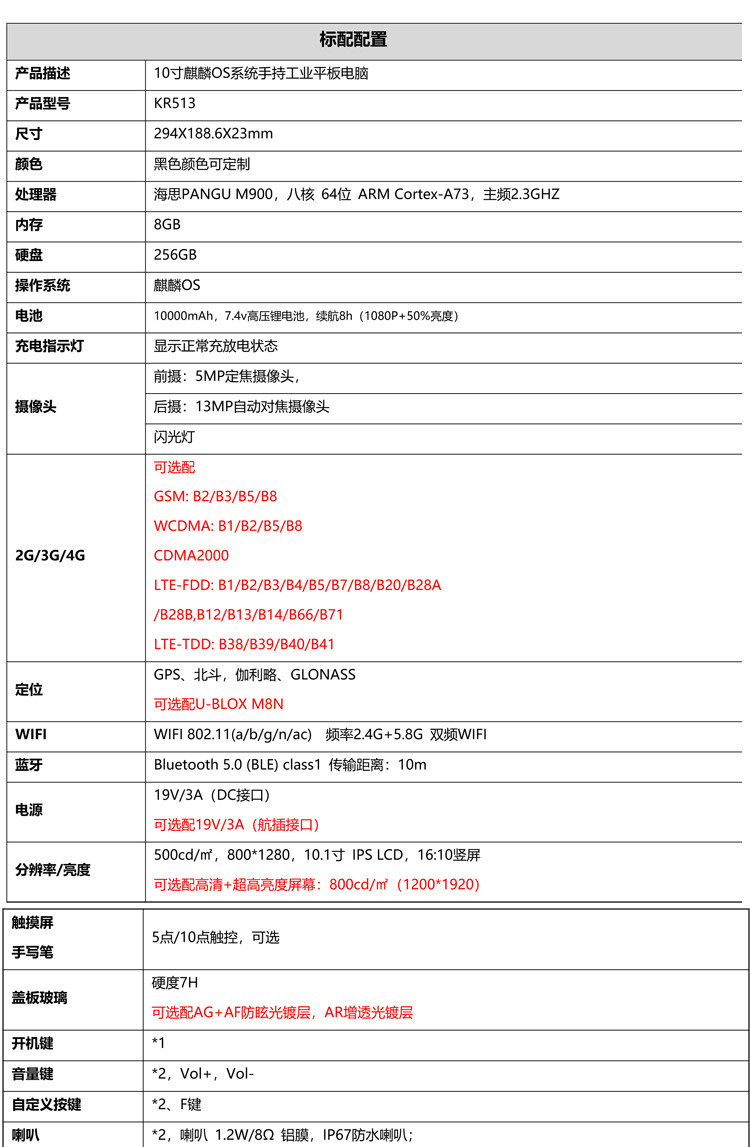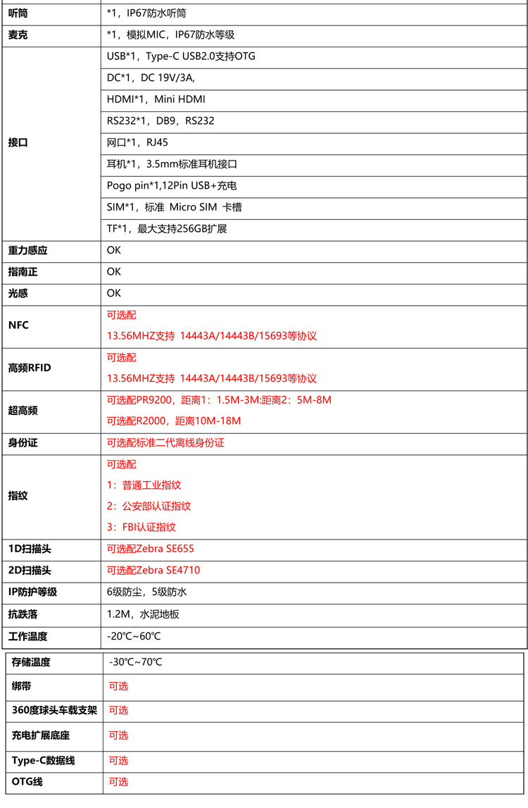 6:支持选配配件有:触屏笔 /拓展底座 / 车载支架 / 宽压车充 / 四点肩带 /备用电池
