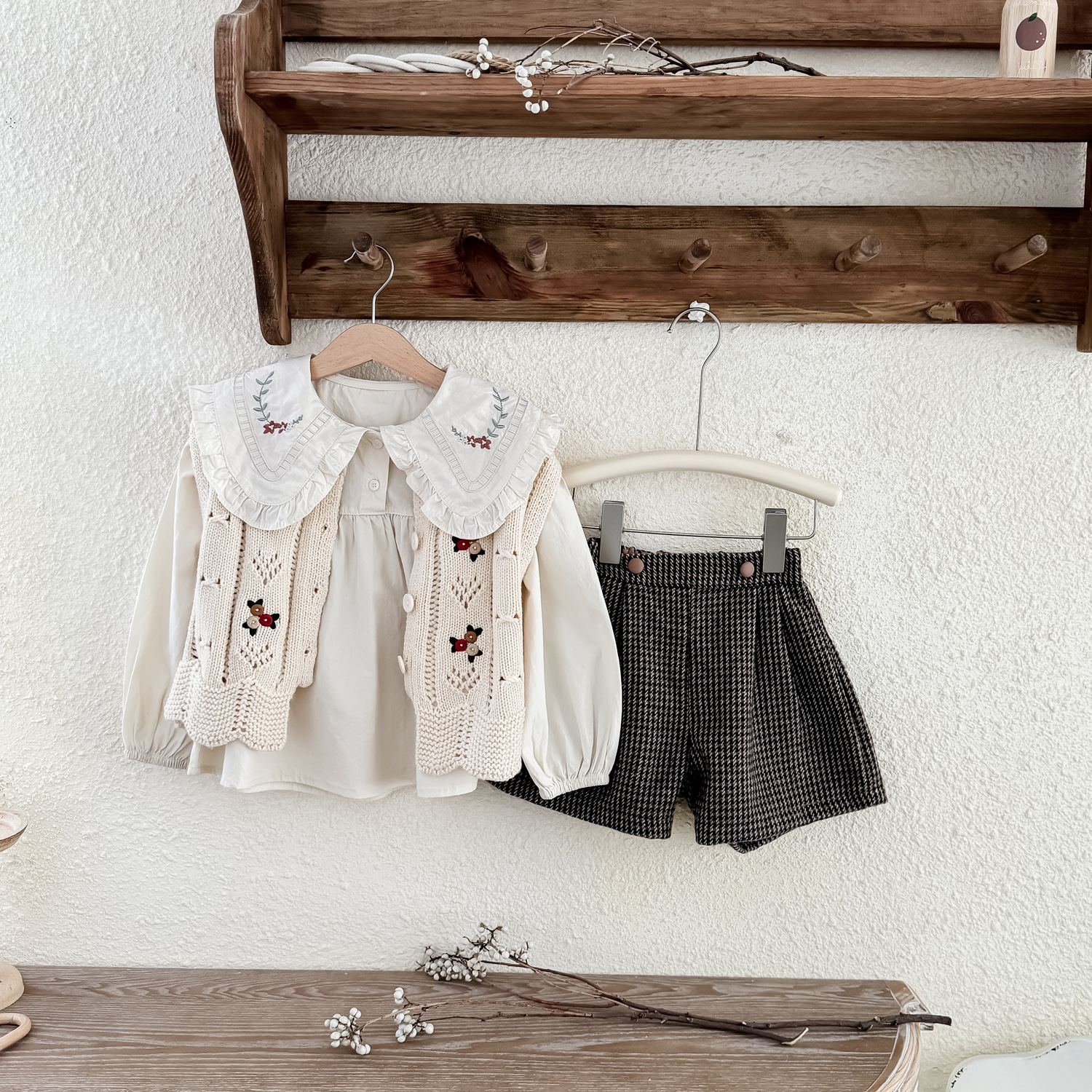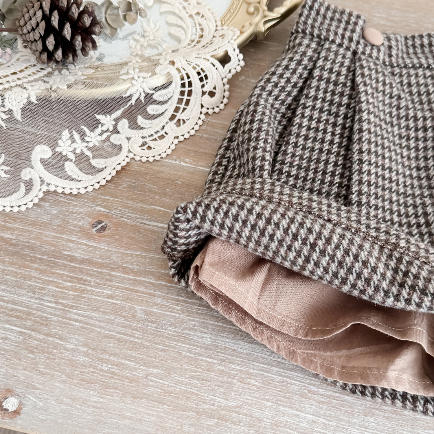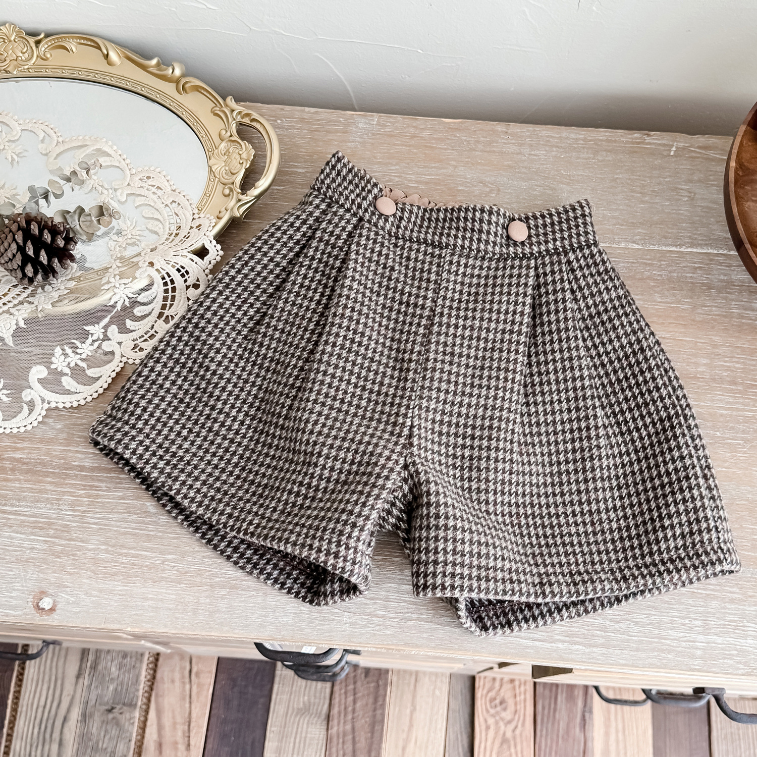 25 가을 겨울 신상 여아용 모직 체크무늬 반바지, 수출용 아동용 물떼새줄무늬 반바지, 영국풍 체크무늬 여아용 부츠팬츠스토어 가기