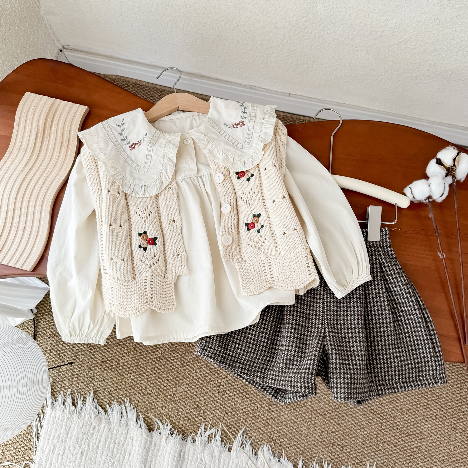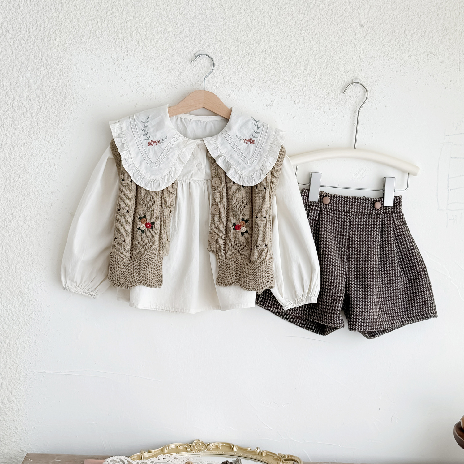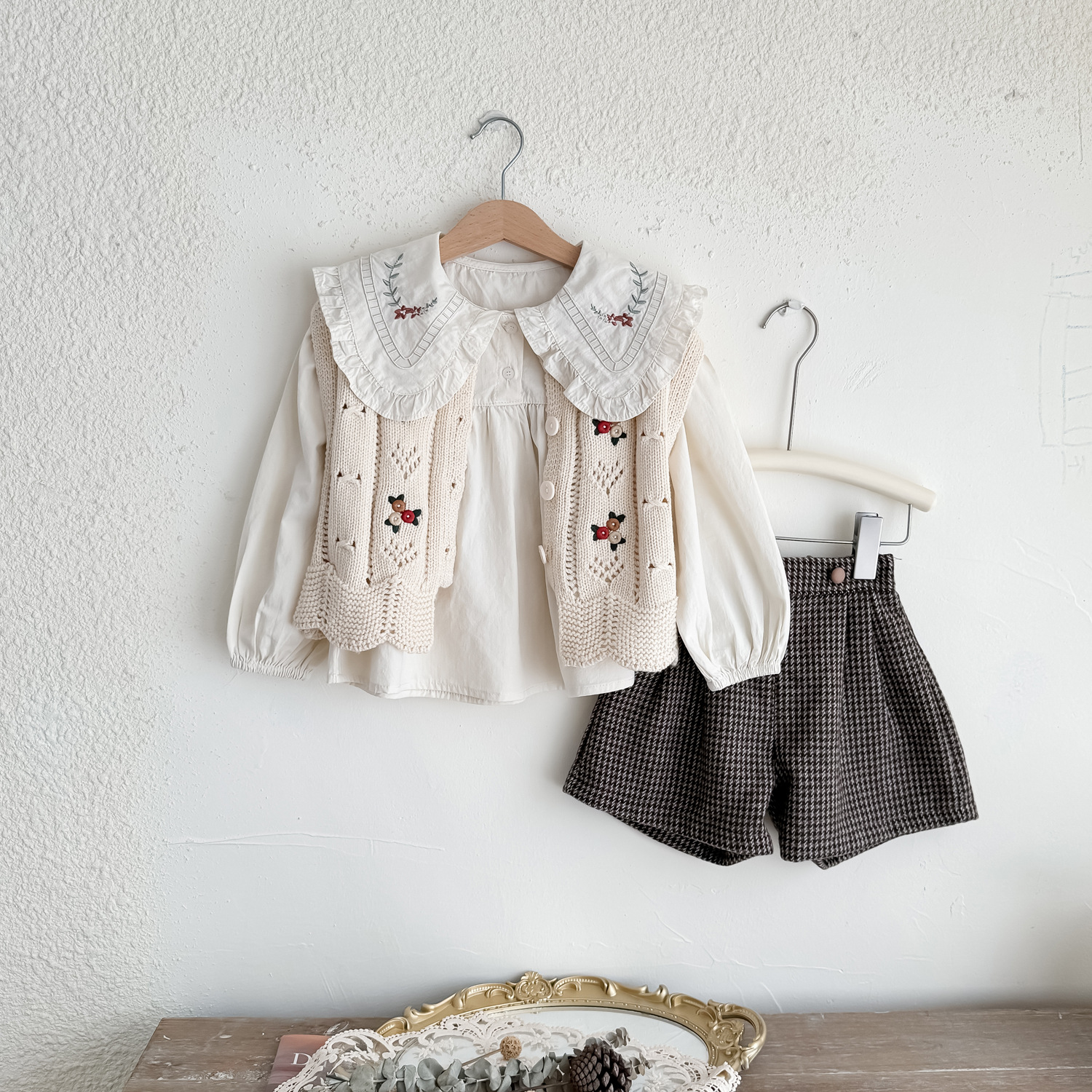 25 가을 겨울 신상 여아용 모직 체크무늬 반바지, 수출용 아동용 물떼새줄무늬 반바지, 영국풍 체크무늬 여아용 부츠팬츠스토어 가기