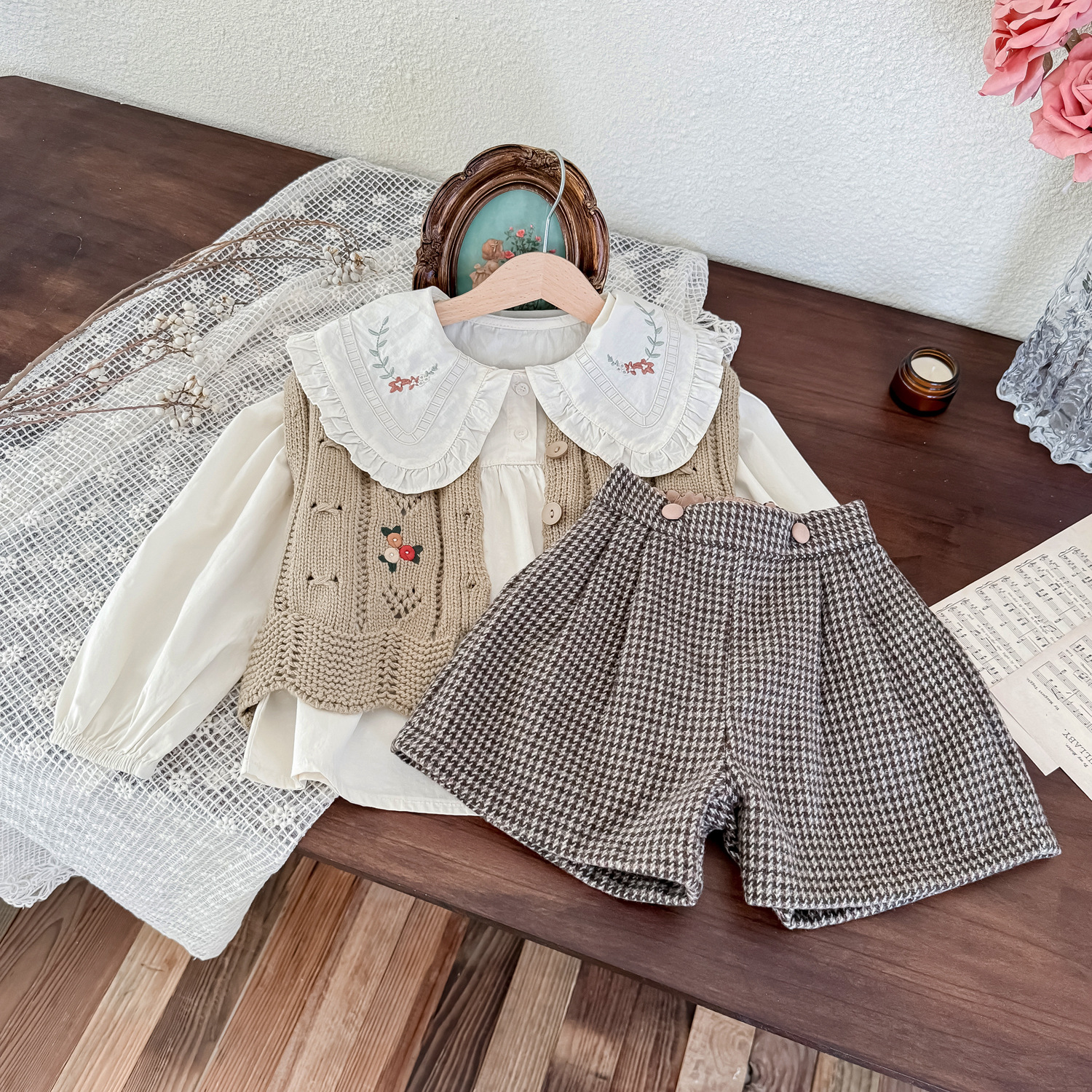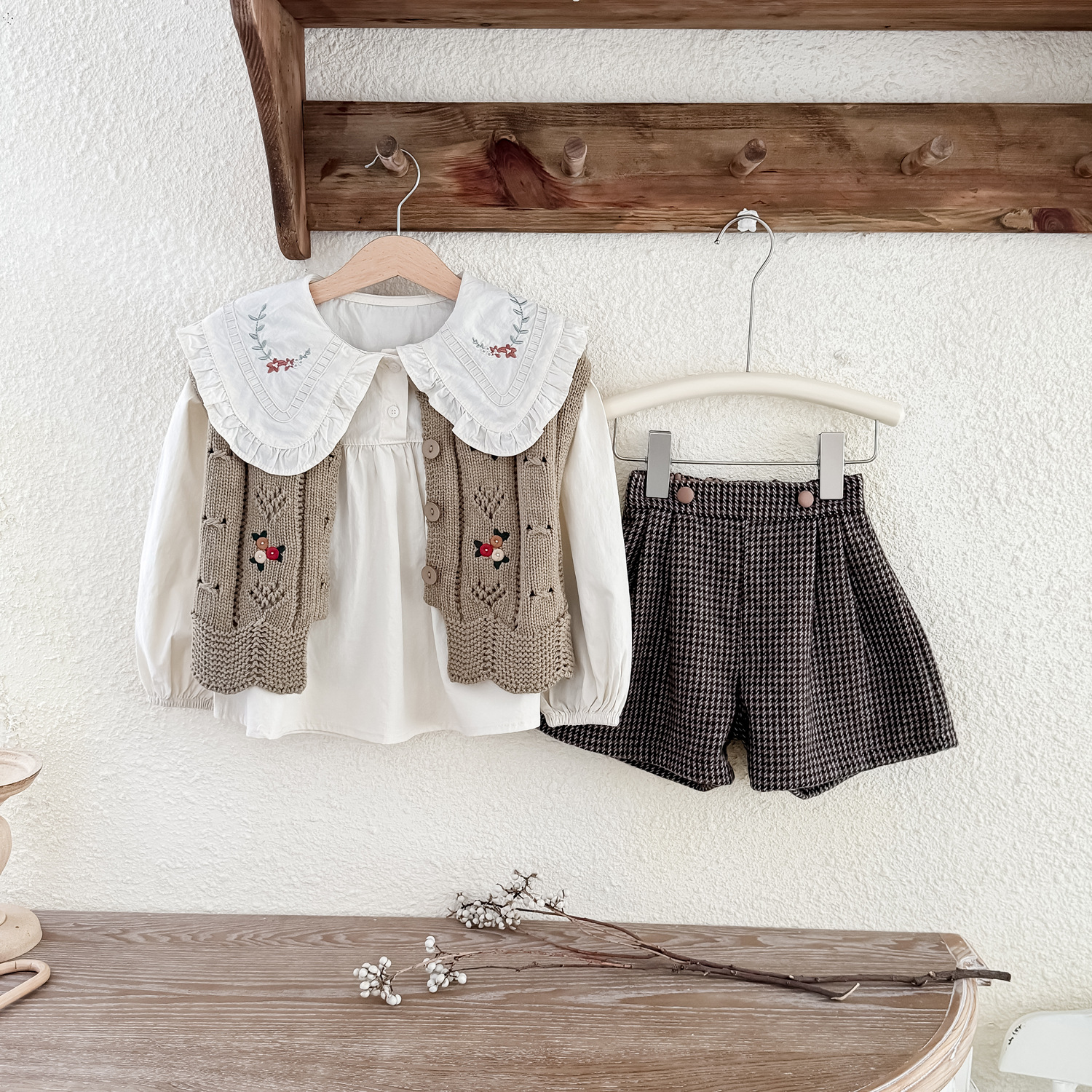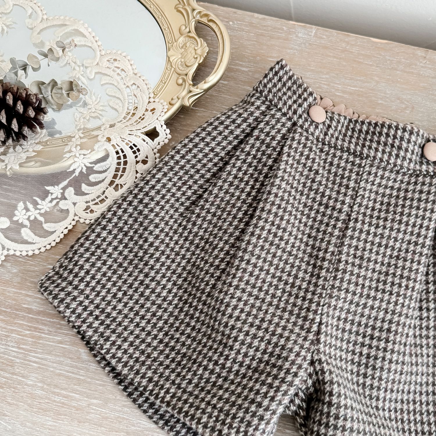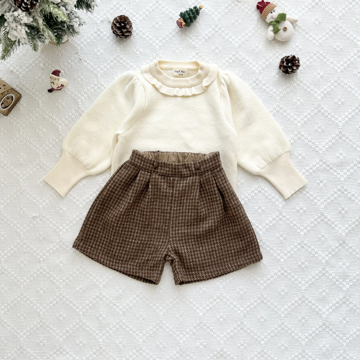 25 가을 겨울 신상 여아용 모직 체크무늬 반바지, 수출용 아동용 물떼새줄무늬 반바지, 영국풍 체크무늬 여아용 부츠팬츠