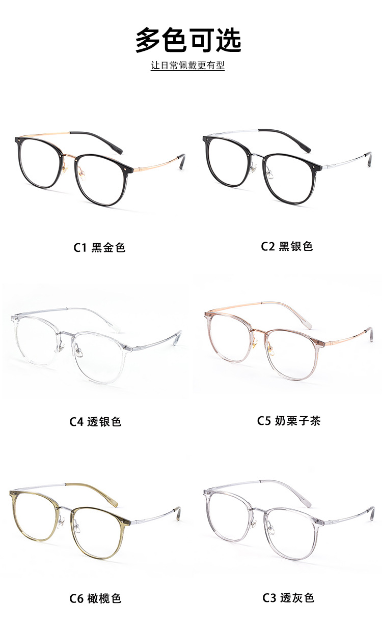 30683 홍콩 스타일 레저 타원형 일반 거울 티타늄 프레임 제조 업체 뜨거운 판매 흰 우유 밤나무 차 플랫 미러의 혼합 배치