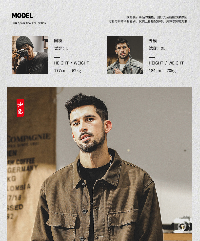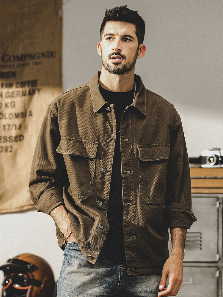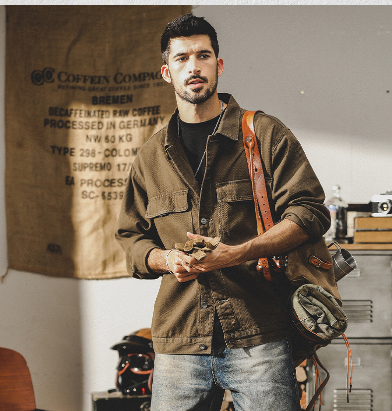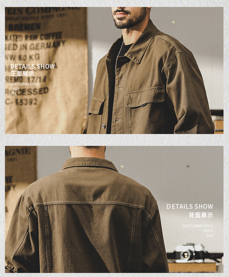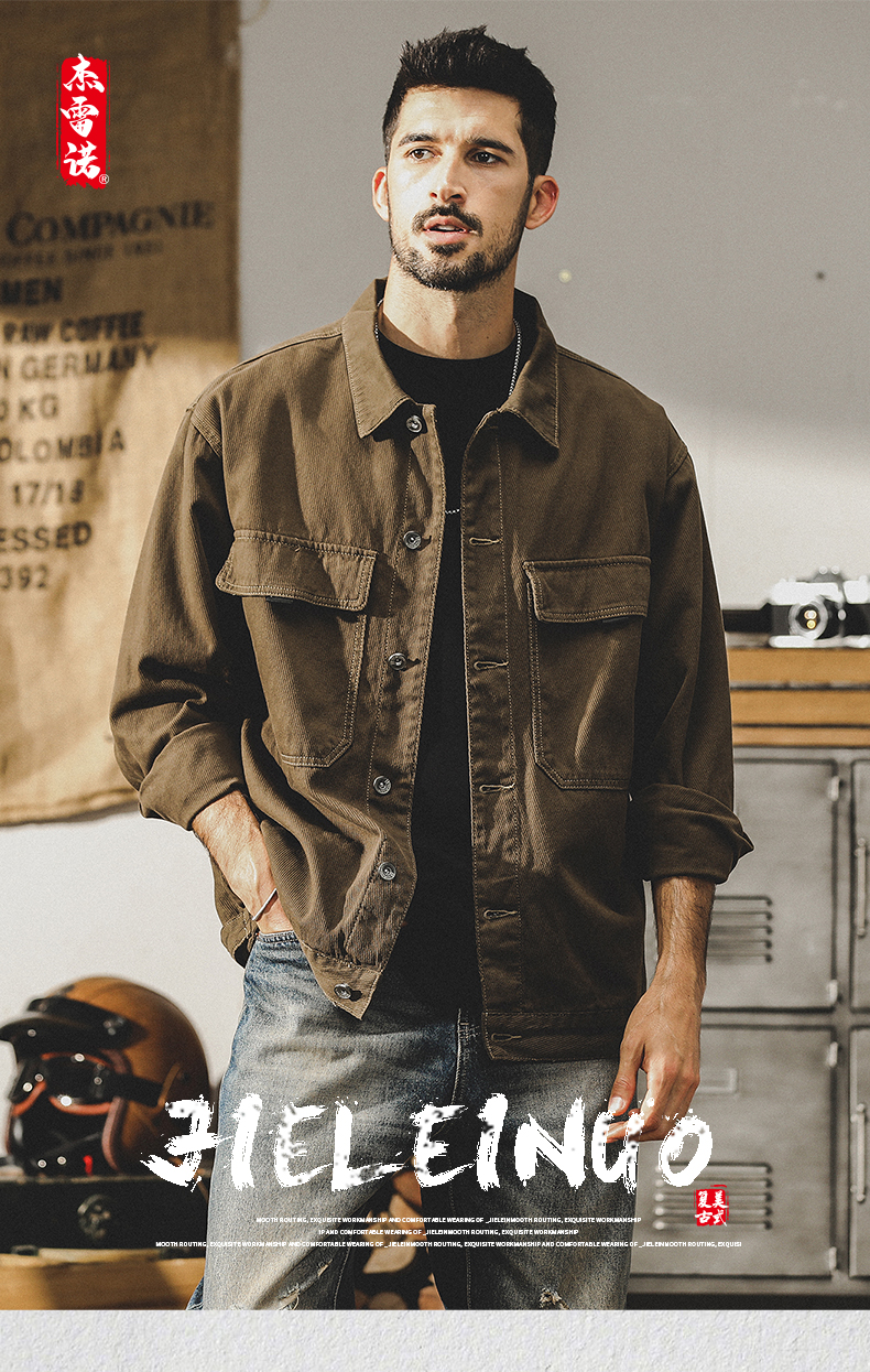 미국 헤비 레트로 툴링 재킷 남자의 봄과 가을 2024 새로운 느슨한 플러스 사이즈 터프 가이 사냥 재킷 남자의 가을