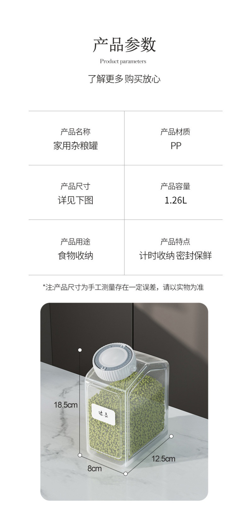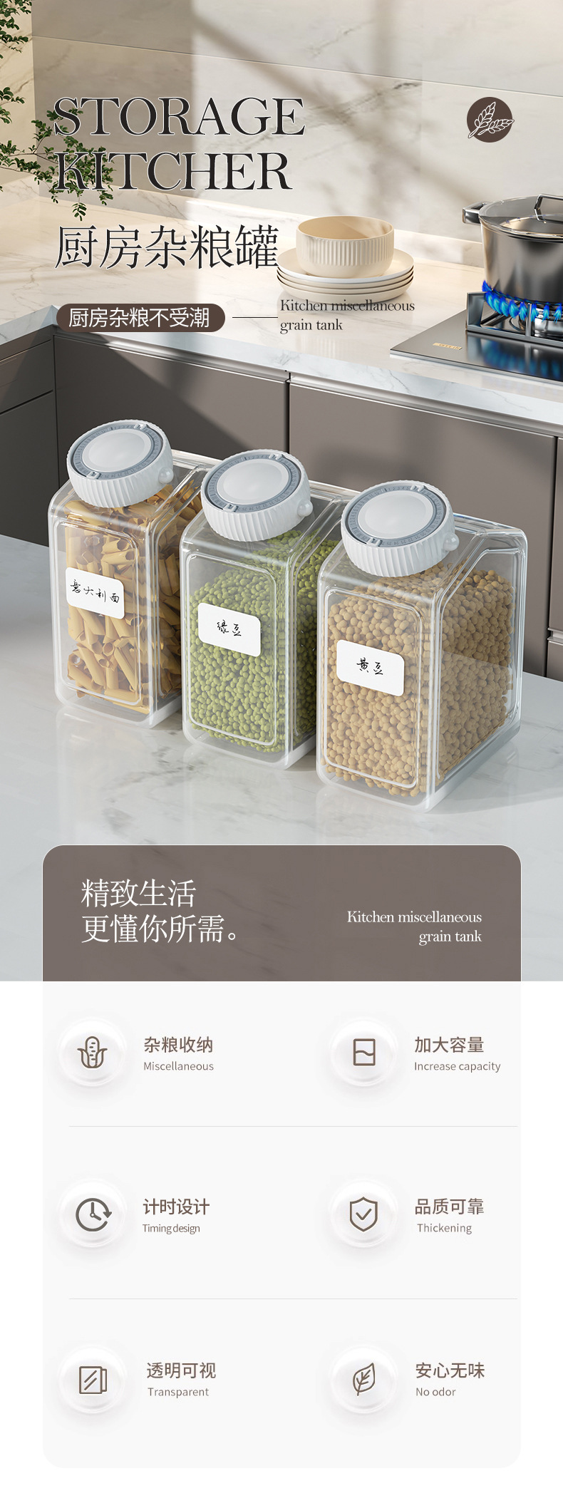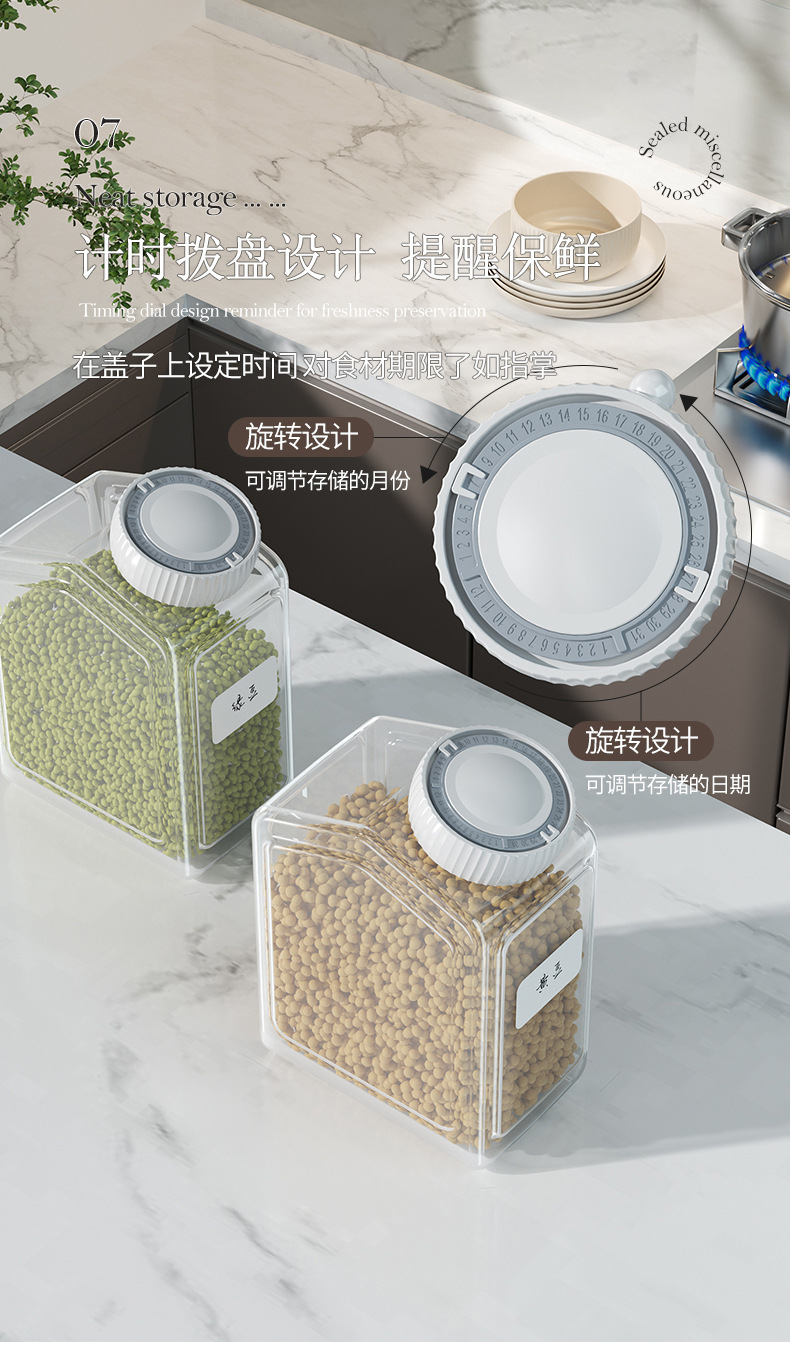 가정용 밀폐 용기 플라스틱 두꺼운 투명 보관함 간식 타이머 포함 주방 보관 용기 곡물 보관함스토어 가기