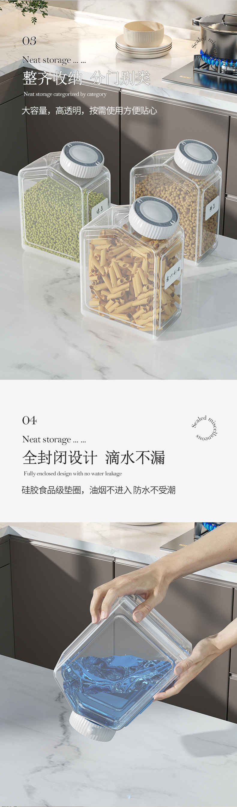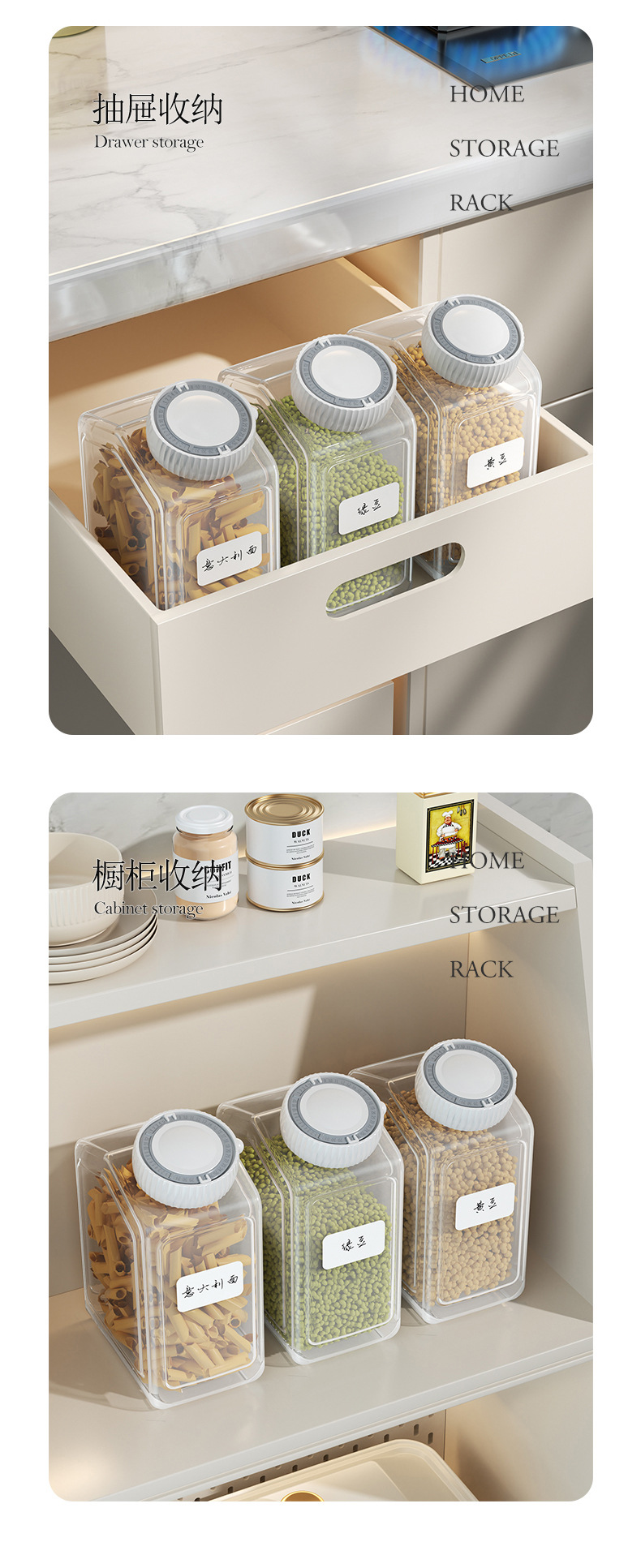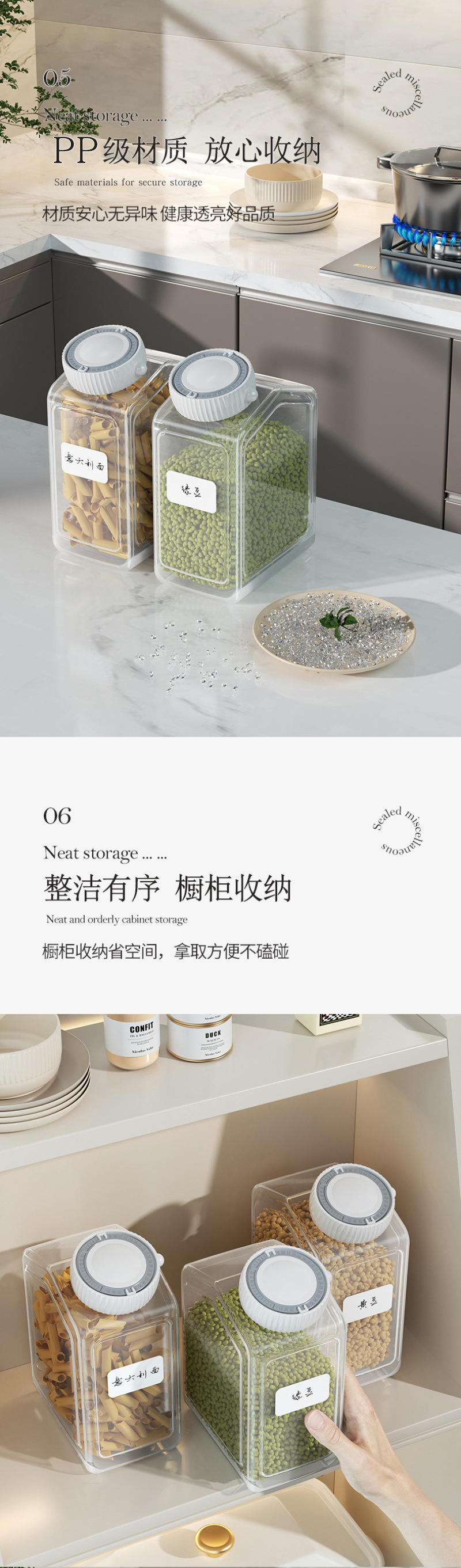 가정용 밀폐 용기 플라스틱 두꺼운 투명 보관함 간식 타이머 포함 주방 보관 용기 곡물 보관함스토어 가기