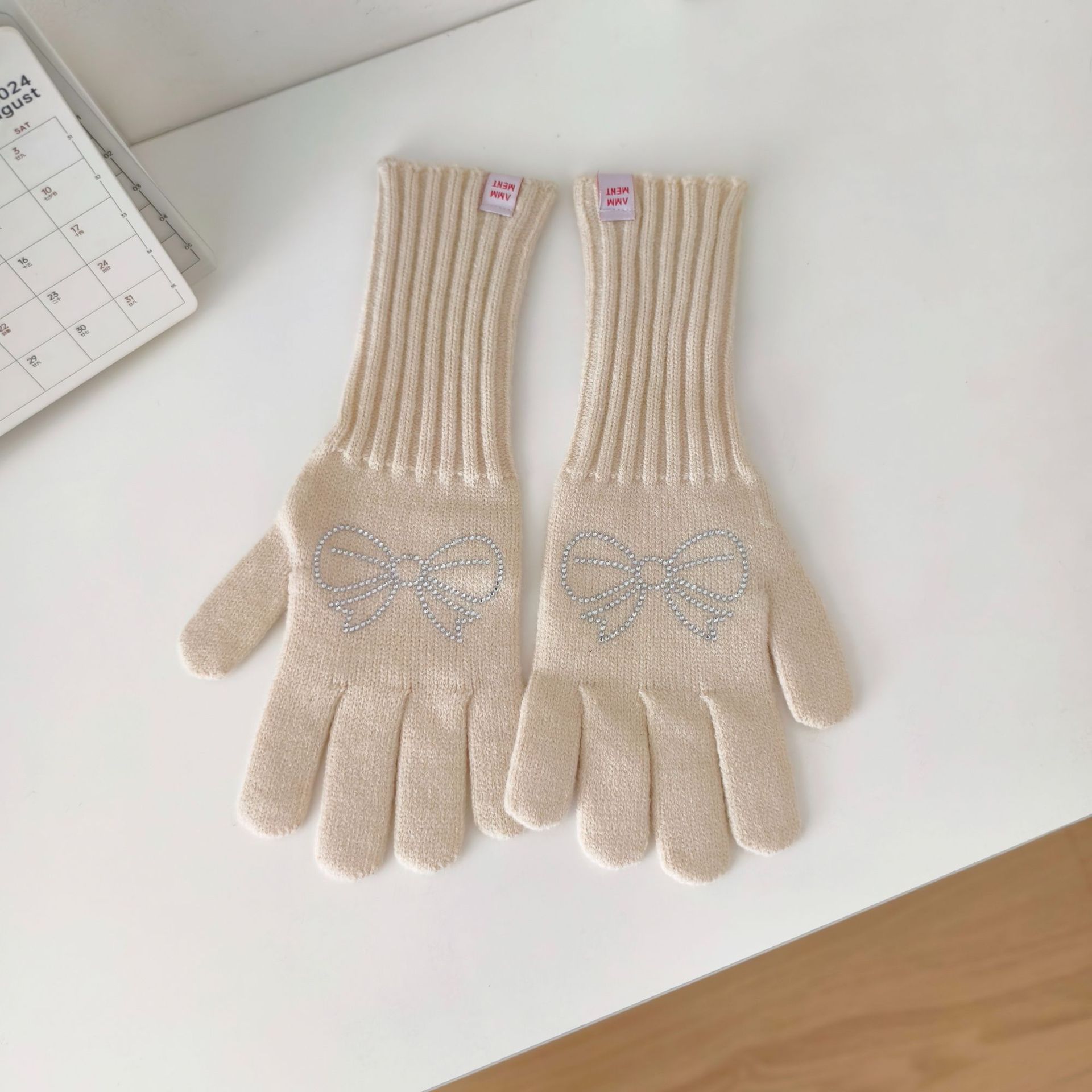한국식 다이아몬드 활 긴 솔리드 컬러 니트 핑거 장갑 여성용 오픈 핑거 터치 스크린 냉간 사이클링 따뜻한 장갑
