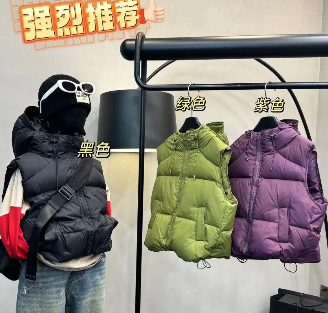 어린이 다운 재킷 2024 소년 소녀를위한 새로운 조끼 위트 코트 모자 두꺼운 조끼 트렌디 착용스토어 가기