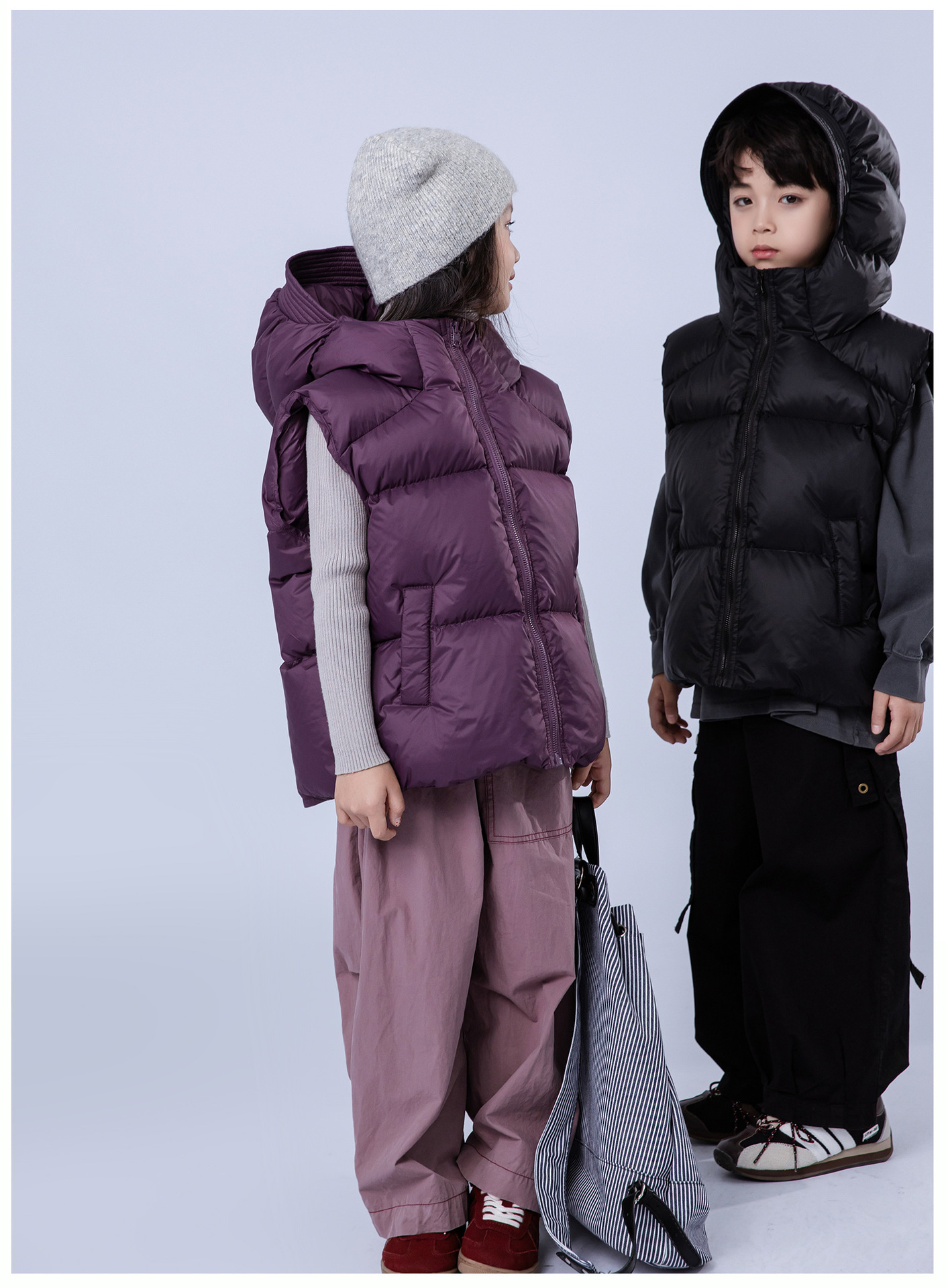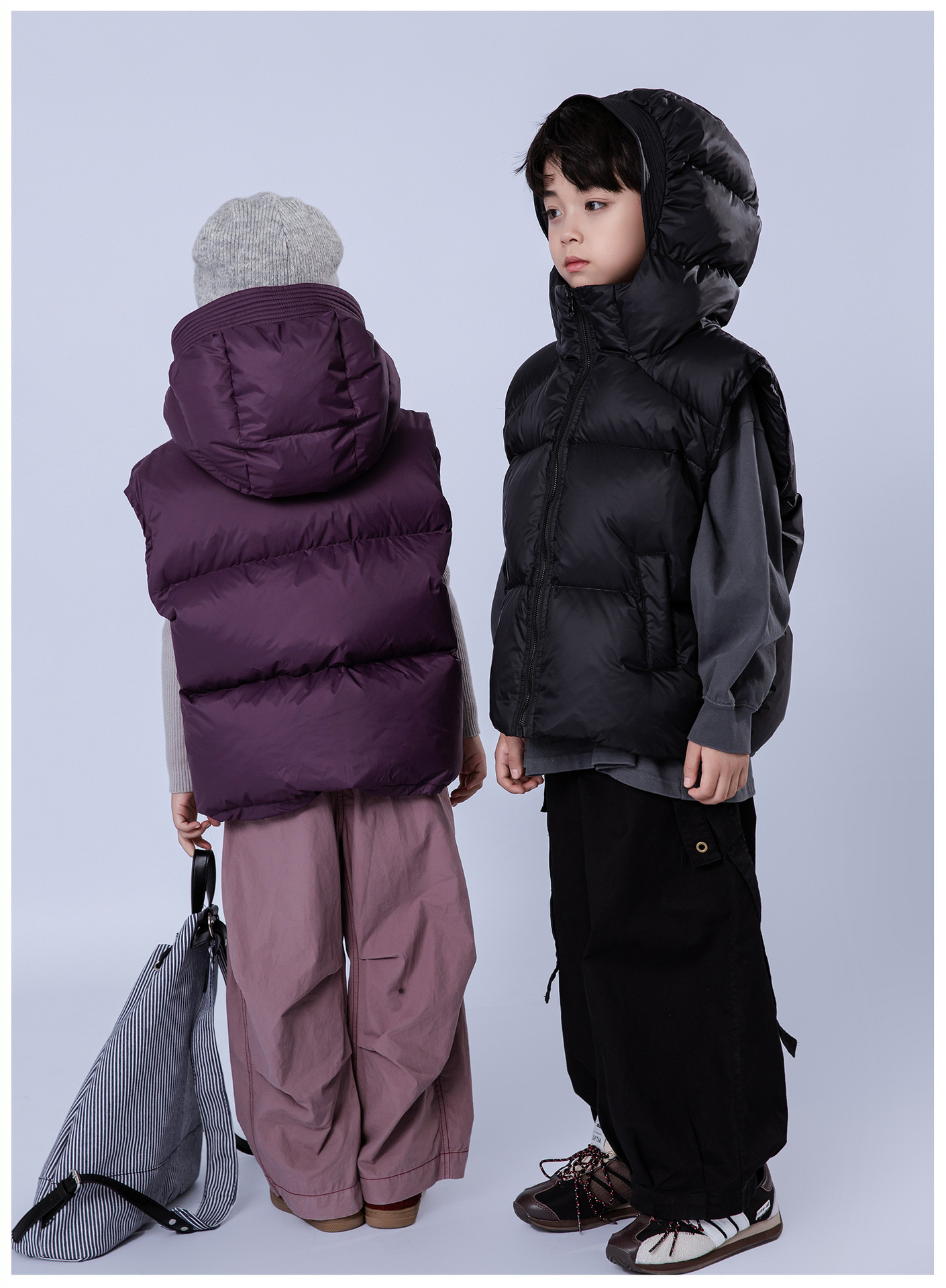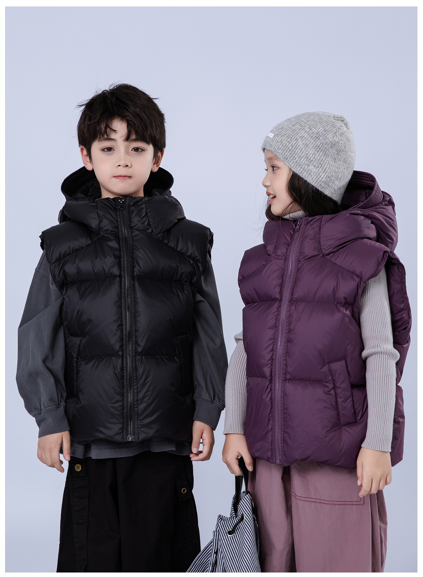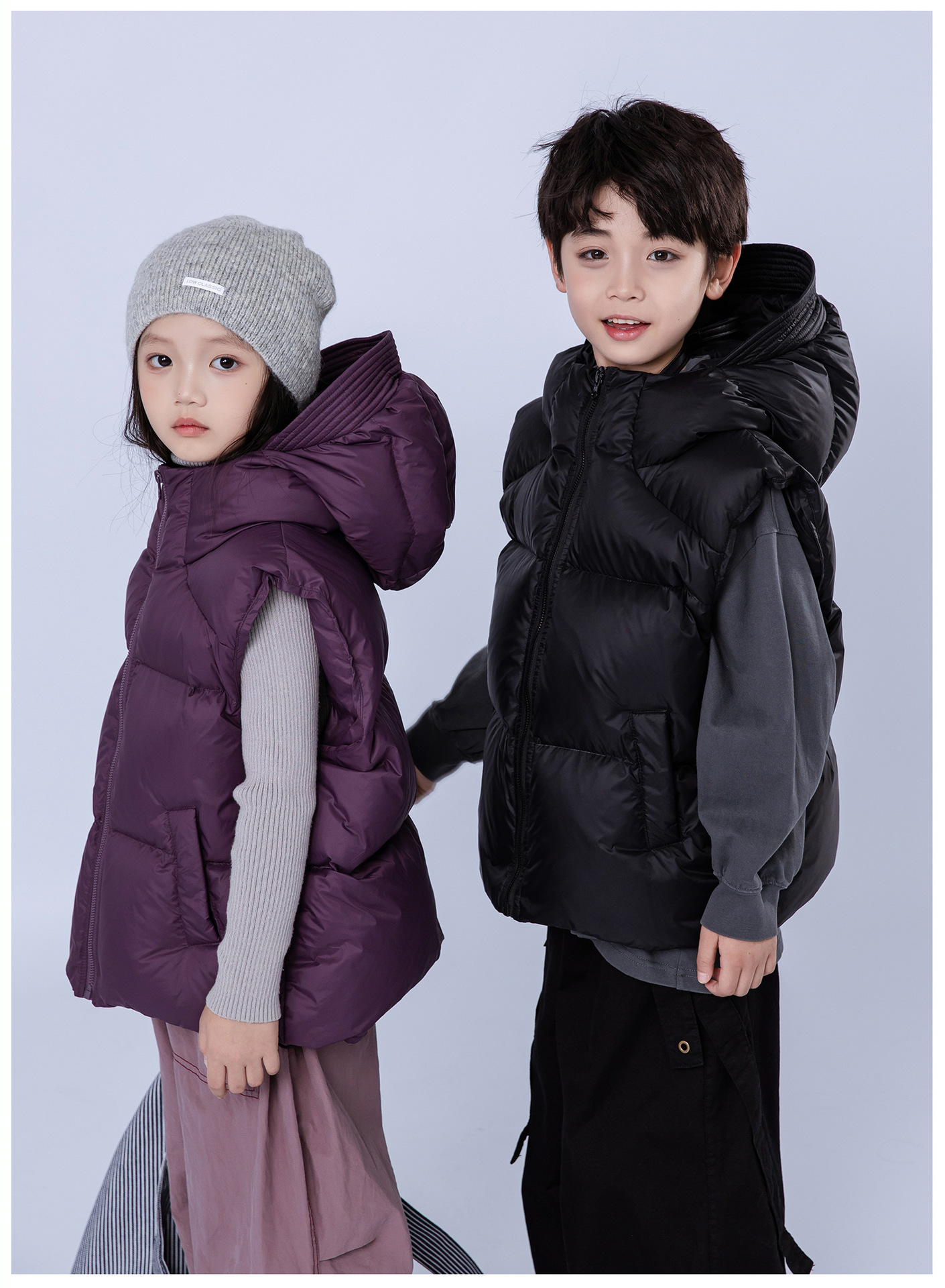 어린이 다운 재킷 2024 소년 소녀를위한 새로운 조끼 위트 코트 모자 두꺼운 조끼 트렌디 착용