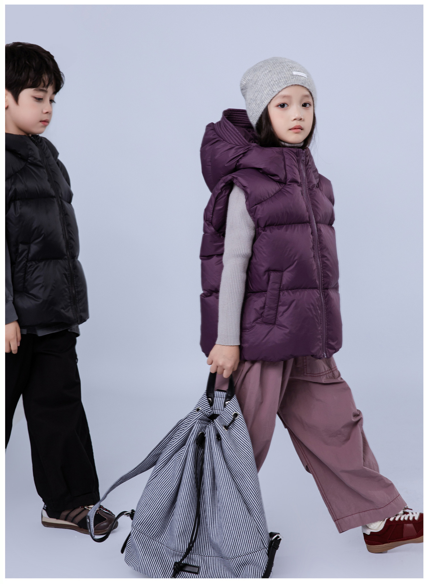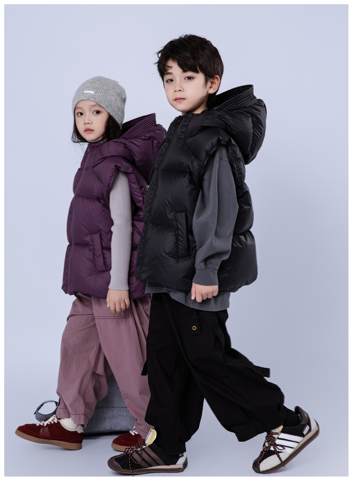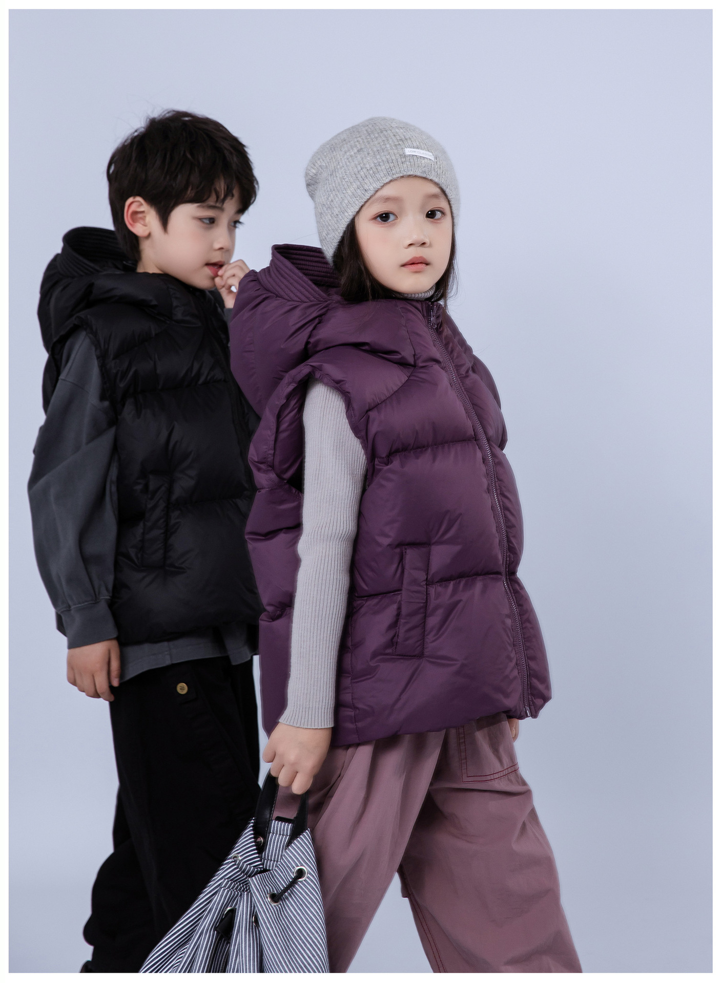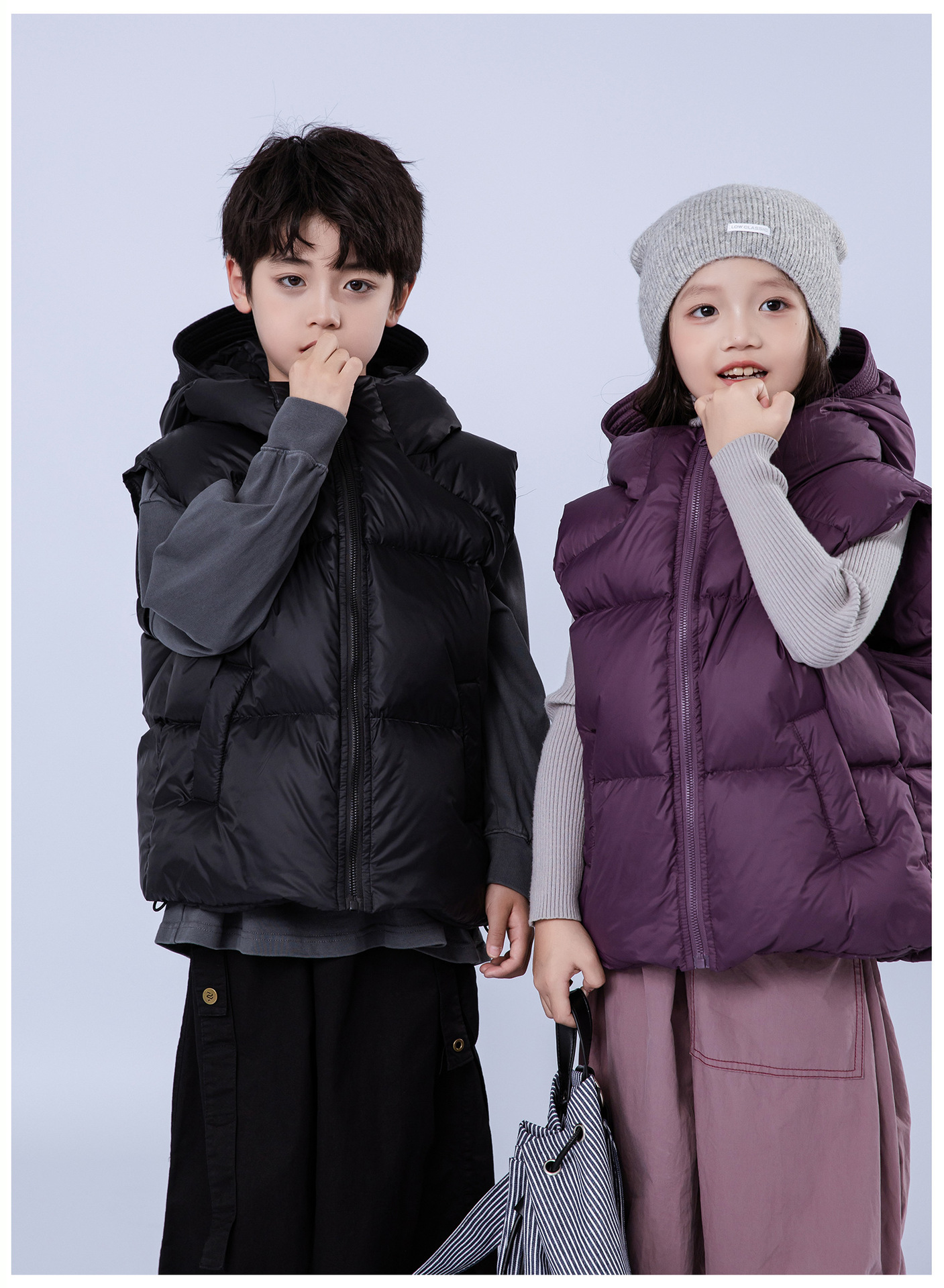 어린이 다운 재킷 2024 소년 소녀를위한 새로운 조끼 위트 코트 모자 두꺼운 조끼 트렌디 착용