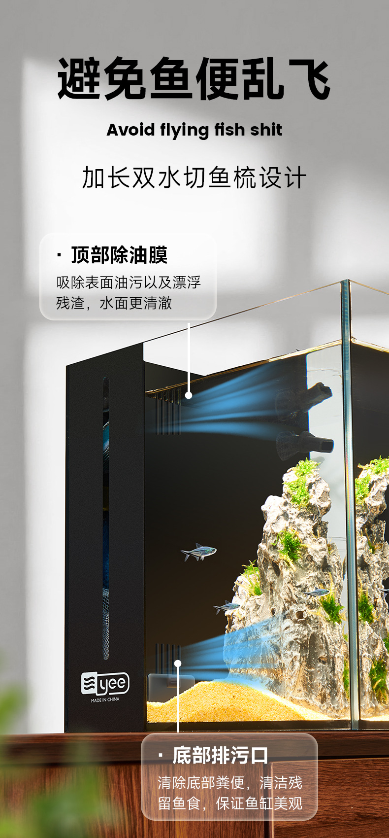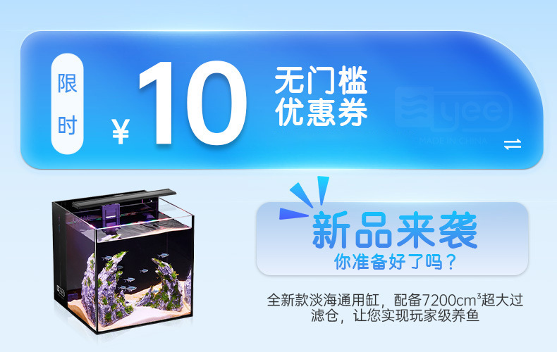 Yee 초백색 어항, 후면 필터 탱크, 거실용 데스크탑 어항, 필터 및 산소 발생기 일체형, 담수 및 해수 어항, 해외 직구 가능스토어 가기