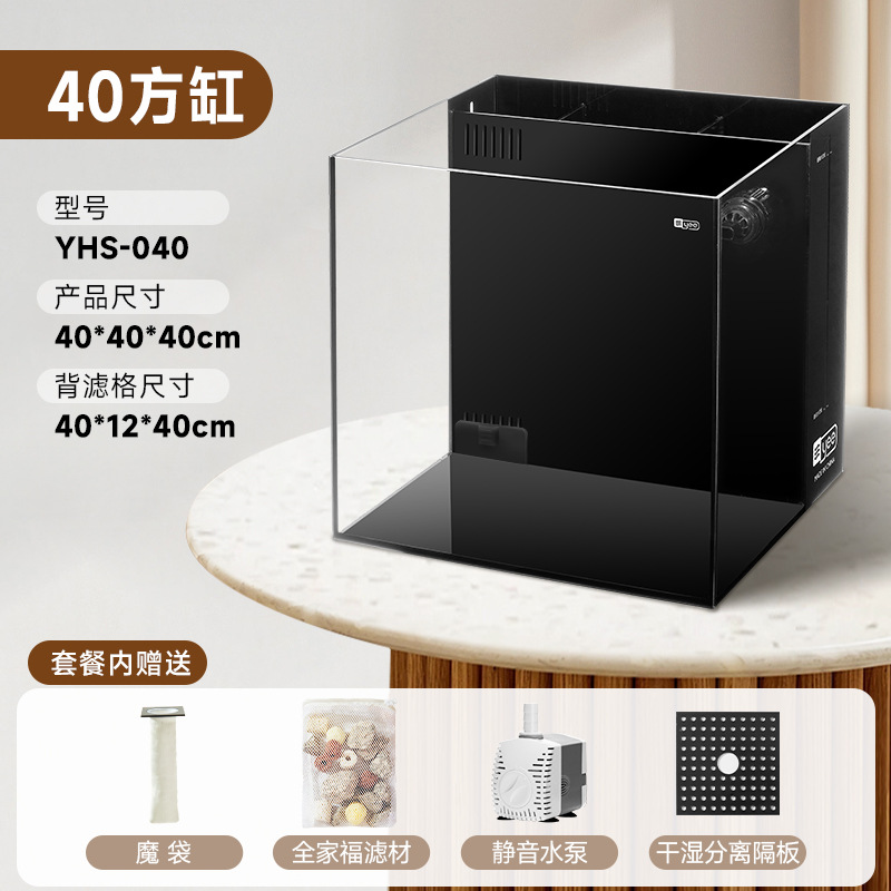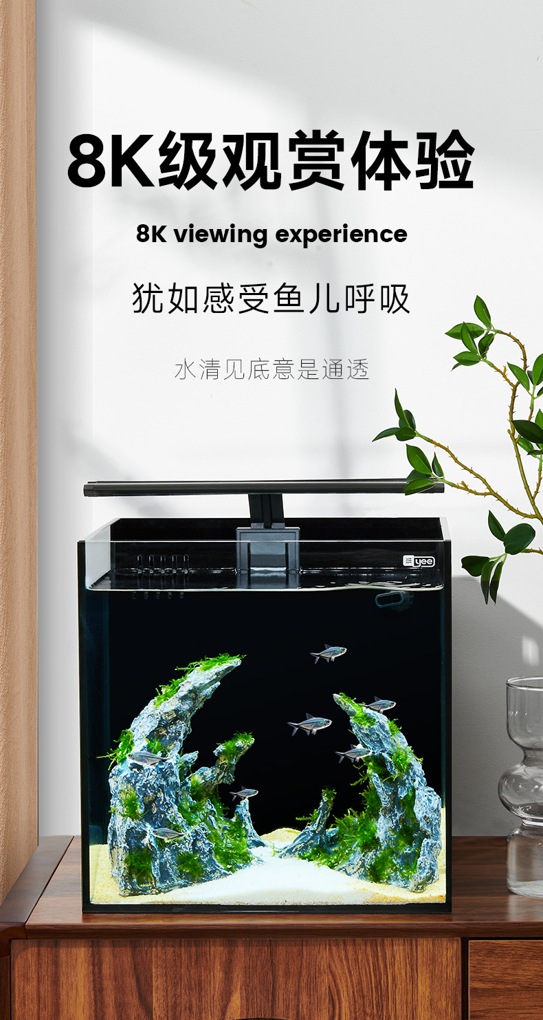 Yee 초백색 어항, 후면 필터 탱크, 거실용 데스크탑 어항, 필터 및 산소 발생기 일체형, 담수 및 해수 어항, 해외 직구 가능