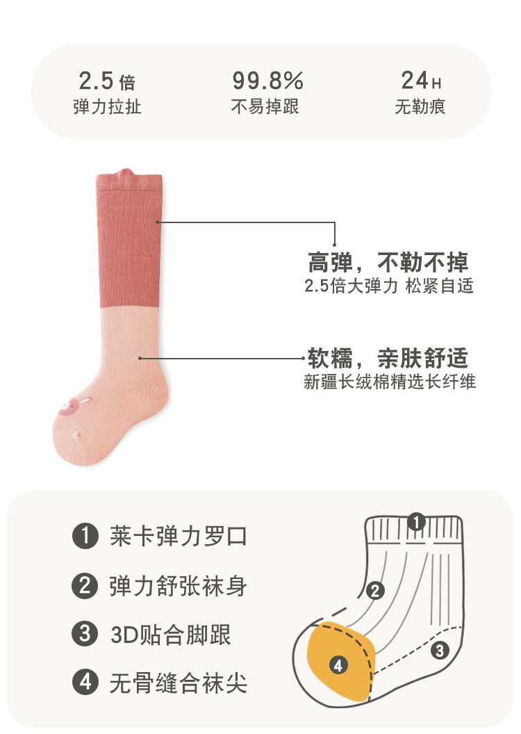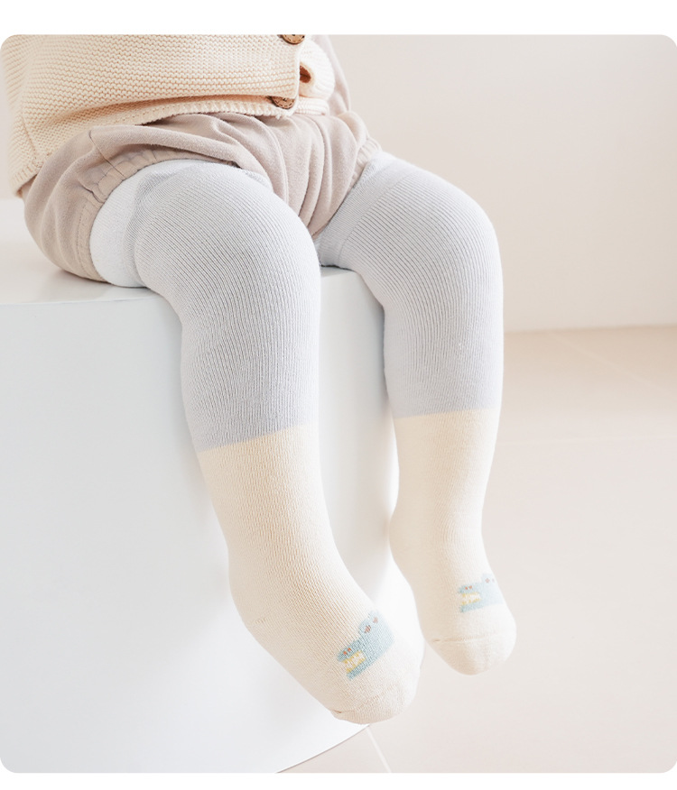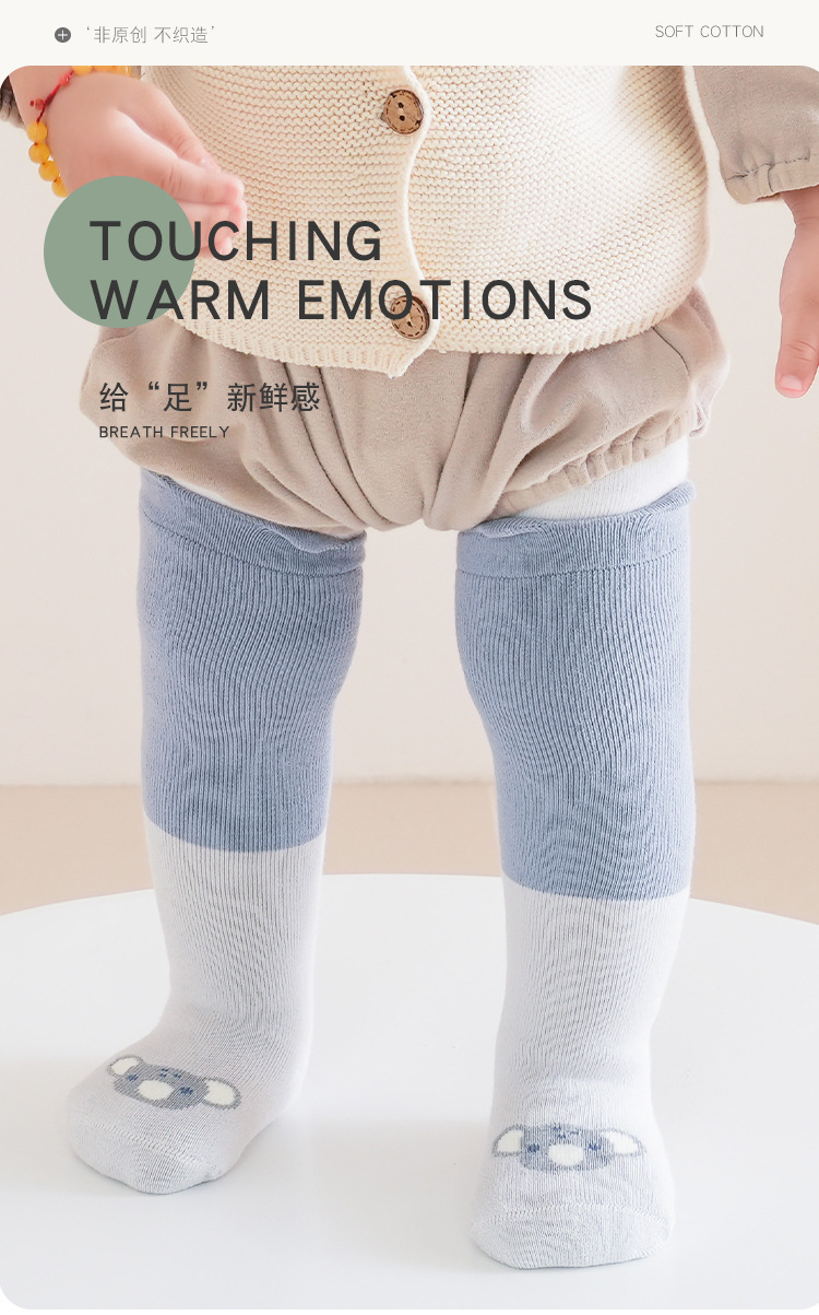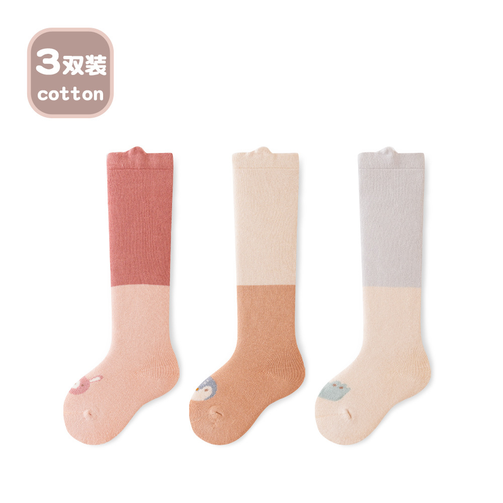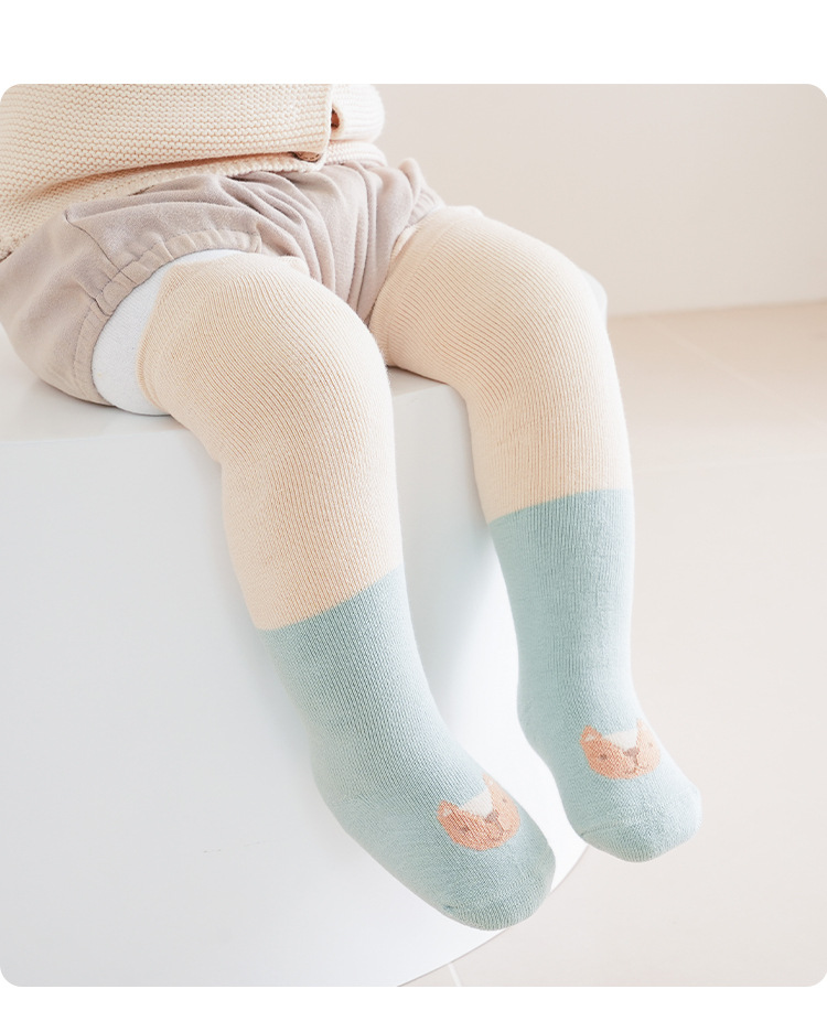 Liu Chengxing 24 가을과 겨울 아기 스타킹 두꺼운 따뜻한 만화 색상 일치하는 아기 무릎 양말 어린이 뼈없는 면 양말