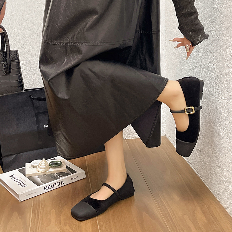 프랑스 스타일 메리 제인 레트로 싱글 레이어 신발 여성의 2024 년 봄과 가을 새로운 얕은 입 한 캐릭터 버클 늦은 저녁 스타일 세련된 싱글 레이어 신발스토어 가기